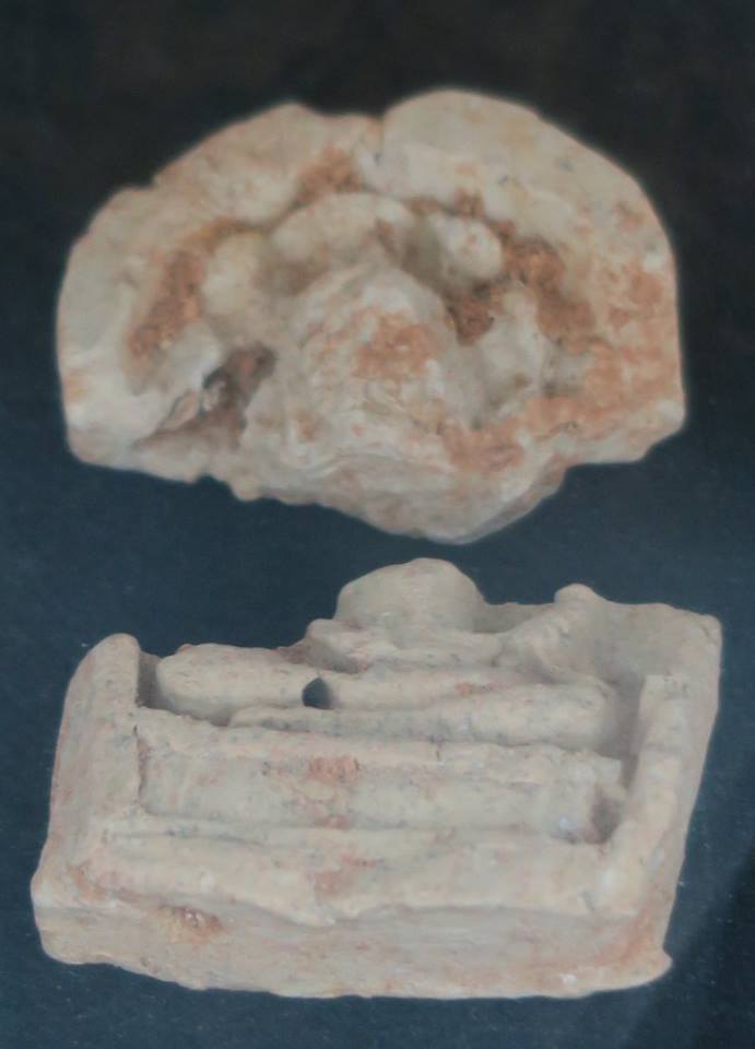 ๔) พระพิมพ์นาคปรกและรูปสถูป รวมถึงแผ่นธรรมจักรดินเผาองค์หนึ่งด้วย