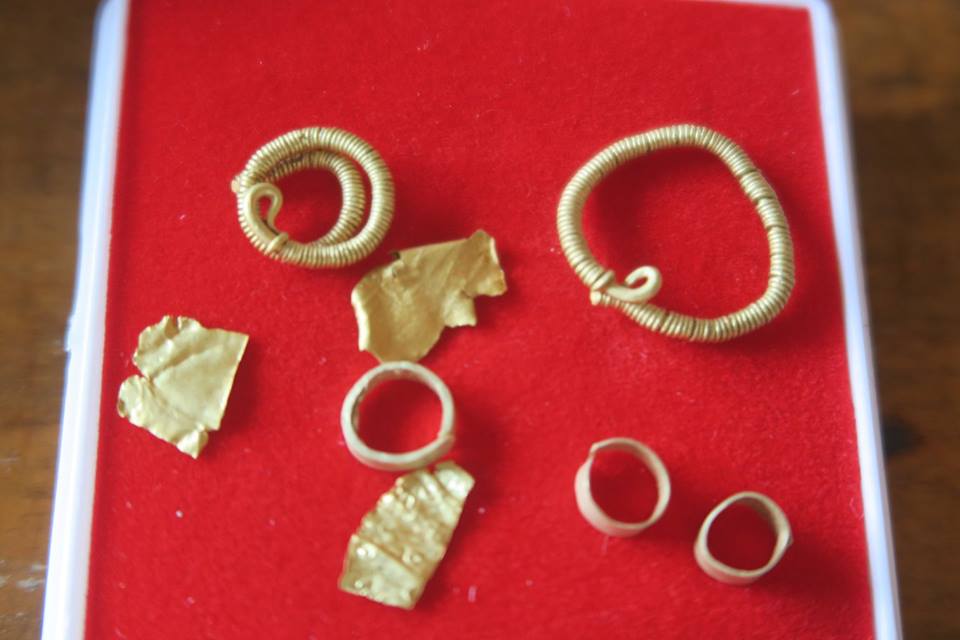 สำหรับสิ่งของที่พบ นอกจากเศษกระเบื้องกับแผ่นอิฐแล้ว ยังพบลูกปัด หิน แก้ว และ ทอง ตลอดจนพระพิมพ์ดินจำนวนไม่น้อย เฉพาะทอง บอกว่าเคยพบเป็นแผ่นรียาว เข้าลักษณะแผ่นทองปิดตามของมนุษย์ก่อนประวัติศาสตร์ ต่างหูทองสองอันที่มีคนถ่ายภาพไว้ก็น่าจะบอกเบาะแสและยุคสมัยได้ด้วย สำหรับลูกปัดที่น่าสนใจมาก ๆ ก็อิฐไส้ดำกับมะยมแก้วสีแปลก ๆ โดยมีใส้เขียวอยู่หนึ่งลูกด้วย ตามที่มีคนถ่ายภาพไว้ การพบเศษก้อนแก้วอาจบ่งบอกว่าที่นี่มีการทำแก้วด้วย