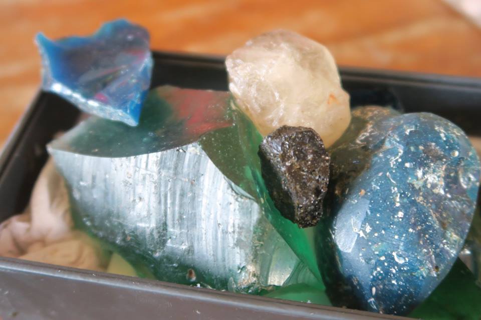 การไปครั้งนี้ จากภาพโพสต์ที่ได้เคยผ่านตา ผมรู็สึกว่าบาสิ่งอย่างที่มีคนพบและโพสต์ อาจจะเก่าไปกว่าศรีวิชัย และที่ได้เห็นก็สนับสนุนข้อสังเกตนั้น กล่าวคือนอกจากพระพิมพ์ดินที่มีอักขระที่ผมยังไม่ได้อ่าน และค้นหาที่คล้ายคลึงไม่เจอว่าสมัยไหนนั้น งานทองและลูกปัดหินกับแก้วที่พบ น่าสนใจมาก ทุกวันนี้ยังมีการขุดหากันอย่างที่เห็นหลุมหนึ่งริมถนนตรงหน้าบ้าน กำลังกลบคืนอยู่พอดี ในขณะที่อีกบ้านหนึ่งมีลานกว้างเพิ่งถมกลบ บอกว่าพบปล้องดินมีคราบไหม้คล้ายปากปล่องอยู่ใต้ดินลึกกว่า ๑ เมตร ซึ่งอาจจะเป็นเตาหลอมโลหะหรือแก้วก็ได้ โดยในตัวบ้าน มี ๒ ห้องครัวที่ยังเป็นปกติ แต่ห้องนอนนั้น กำลังขุดลึกค้างอยู่ ส่วนห้องรับแขกที่ขุดเสร็จนานแล้วนั้น ปูกระเบื้องเป็นหลุมอย่างที่เคยขุดไว้เสียเลย แปลกดี.