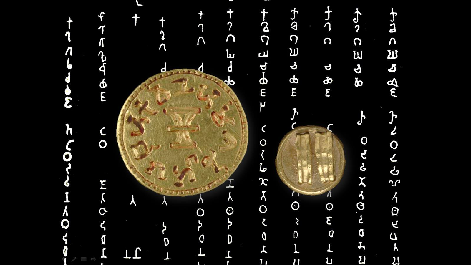 ๒) ตราทองจารึกอักษรพราหมีว่า "พฤหัสบดี ศรมส นาวิกส" จากบางกล้วยนอก ระนอง