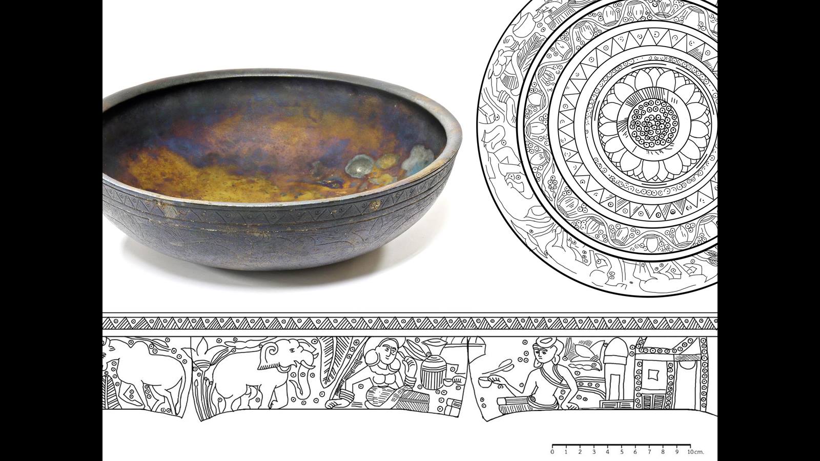 ๓-๔) ขันสำริดมีดีบุกสูง รูปอินเดียโบราณชัด ๆ จากเขาสามแก้ว ชุมพร