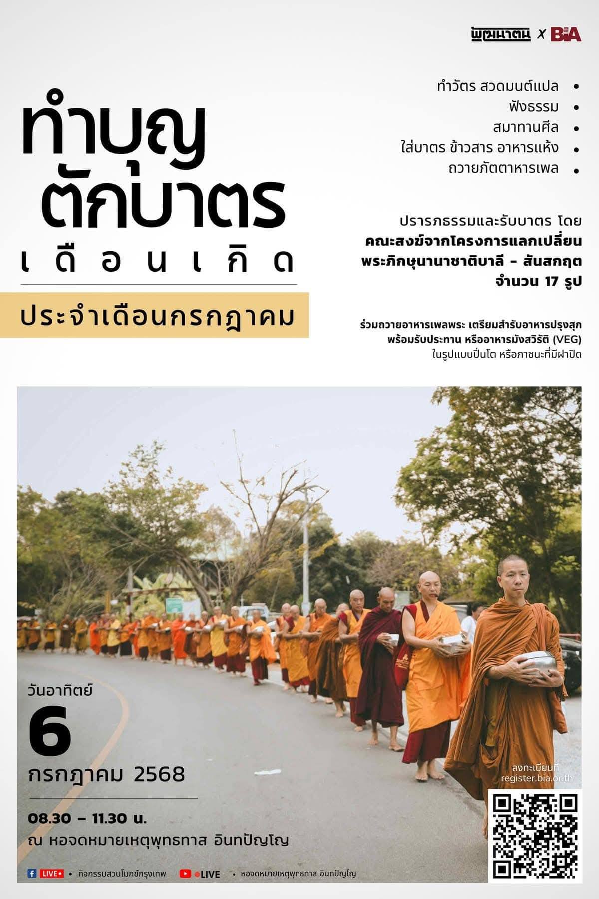 ✨เชิญร่วมทำบุญตักบาตรและถวายภัตตาหารเพล กับคณะสงฆ์ 2 สายธรรม จากสายบาลี–สันสกฤต ในกิจกรรมพิเศษประจำเดือนเกิด กรกฎาคม ณ สวนโมกข์กรุงเทพ ✨?