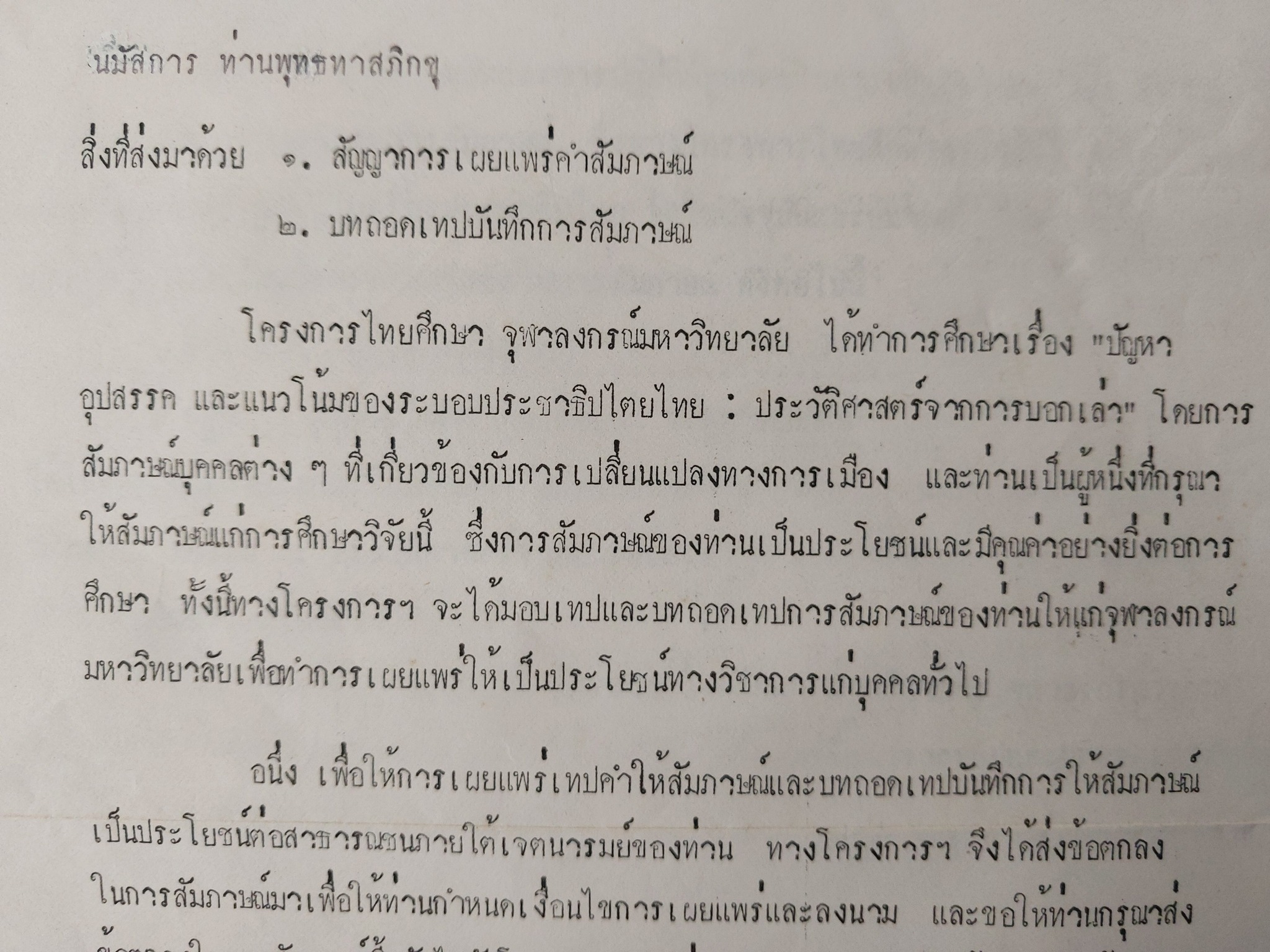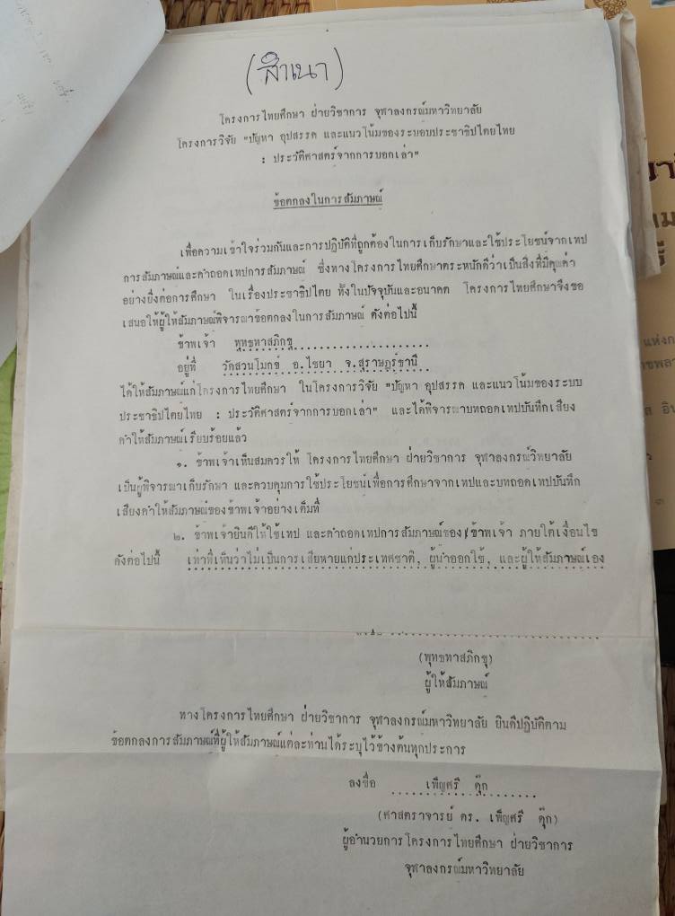 ขอท่าน อ พุทธทาสลงนามยินยอมในบันทึกข้อตกลง