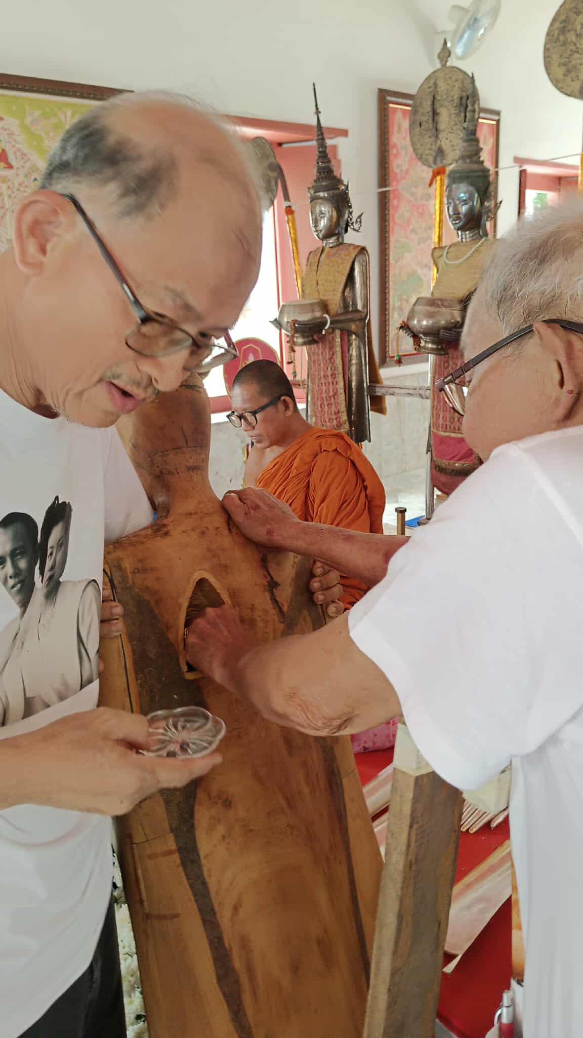 แล้วปิดด้วยแผ่นเงิน มีจารึกด้านนอกแล้วตอกหมุดไว้ด้วยครับ