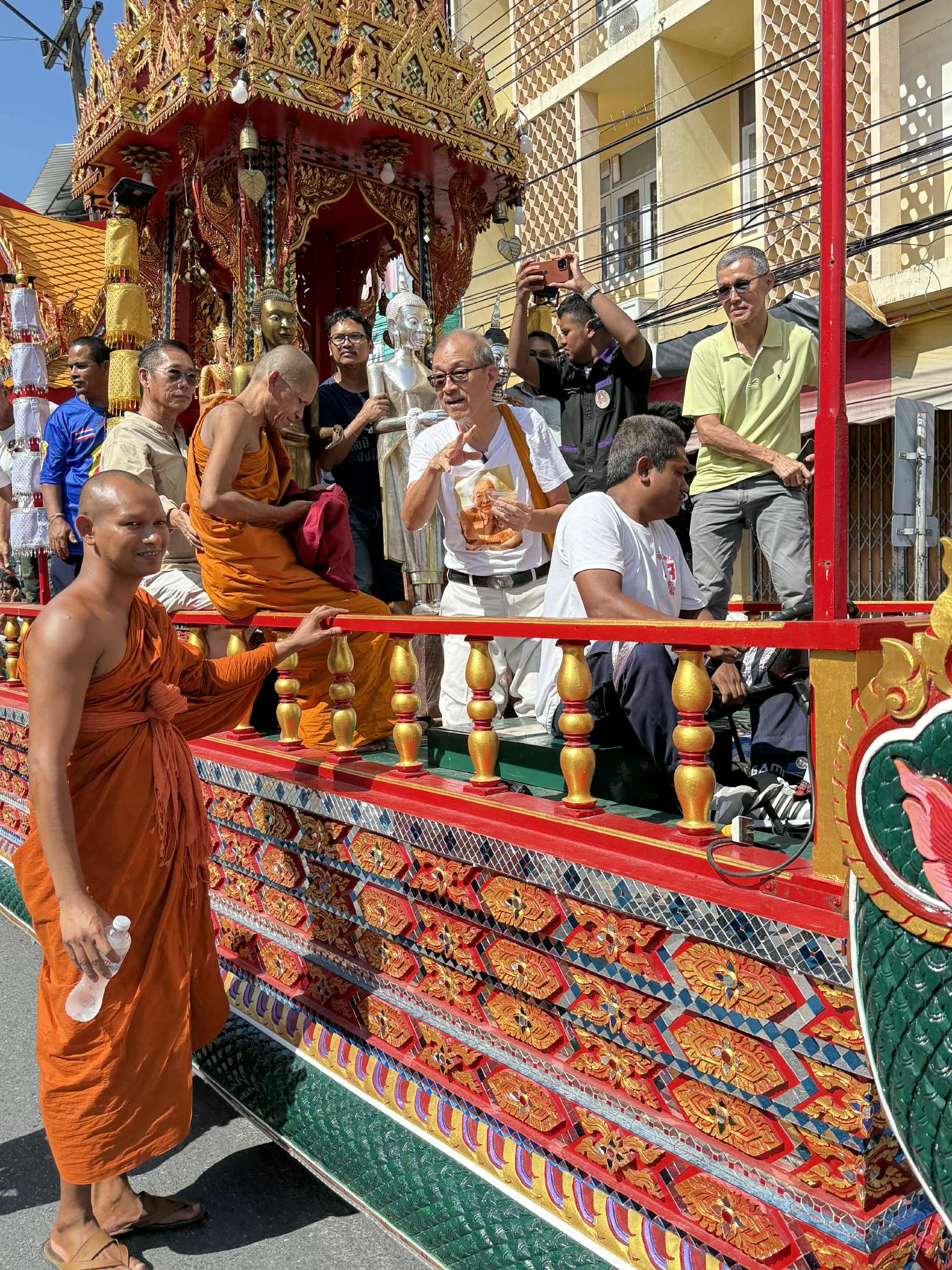 มีพี่น้องญาติมิตรมารอรับและร่วมกันลากพระไปวัดจันกันเป็นร้อยครับ