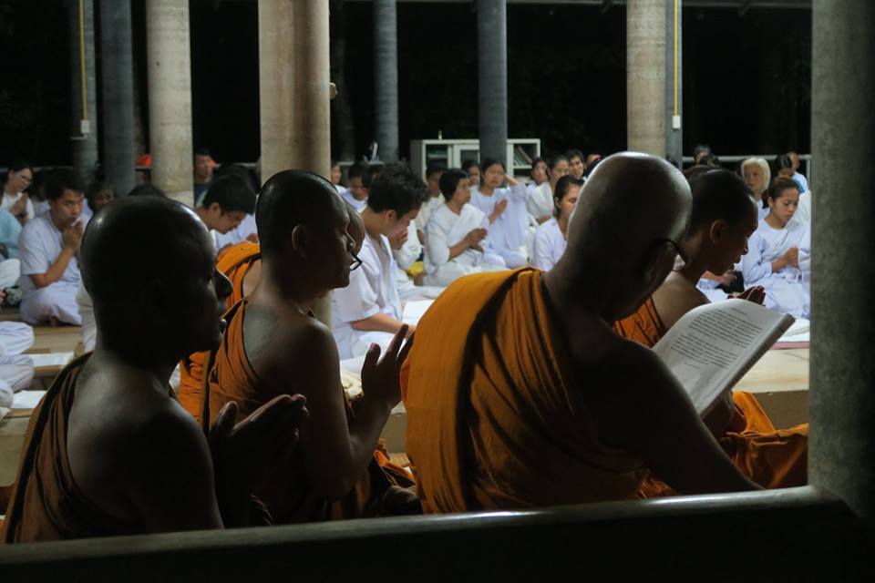 ภาพ การสวดมนตร์ทำวัตรค่ำแล้วสนทนาปรารภธรรม