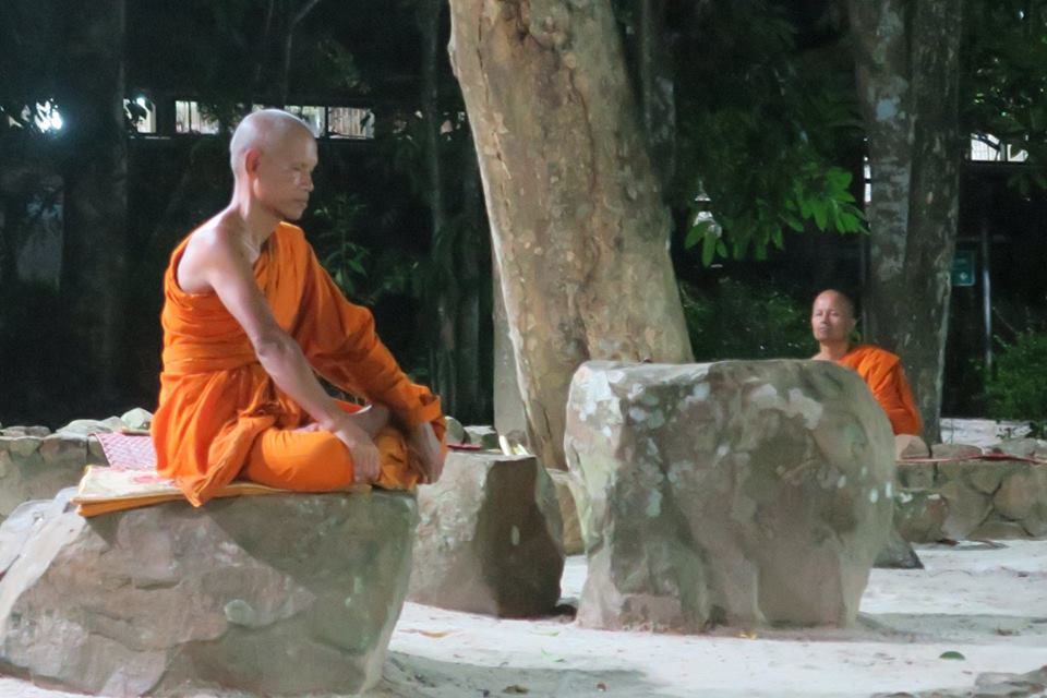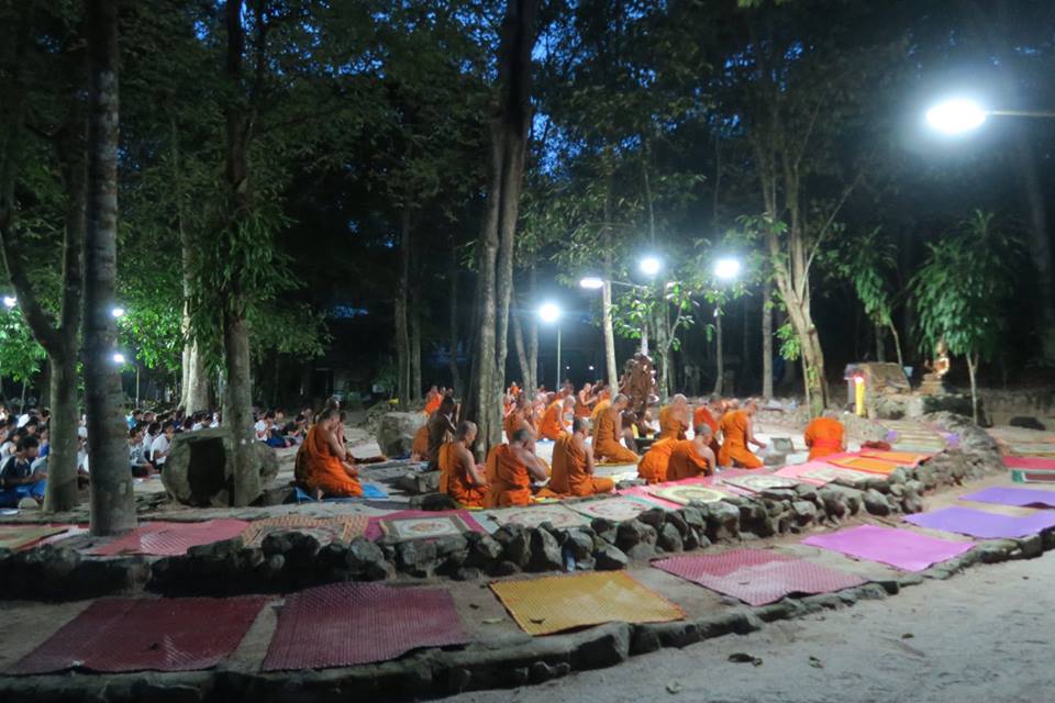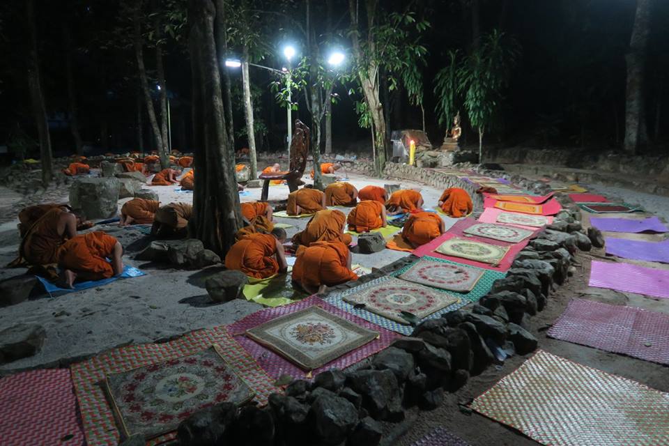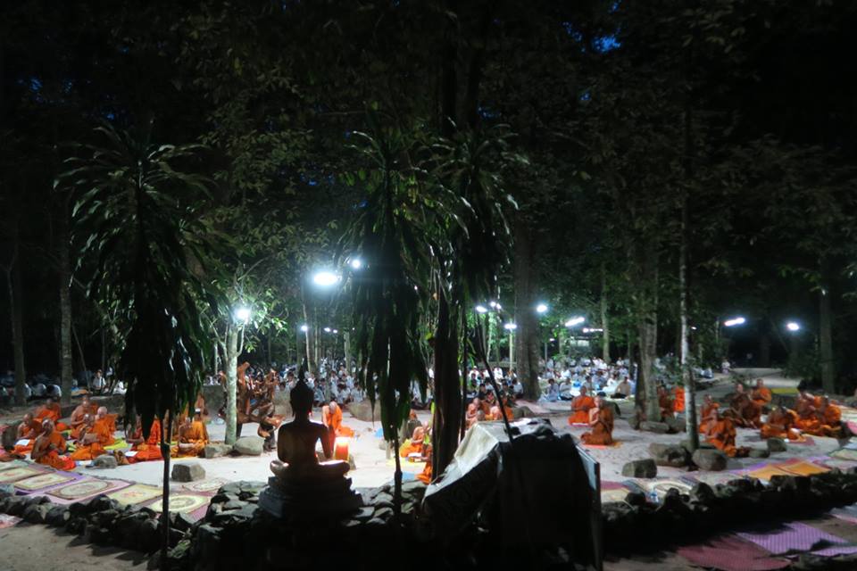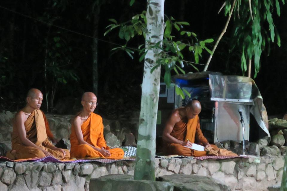 ภาพการสวดมนต์ทำวัตรเย็นและฟังปาฐกถาธรรมกัณฑ์ที่ ๓ ที่ลานหินโค้ง สวนโมกข์ไชยา เมื่อคืนวันที่ ๒๗ พค.๕๙ มีข้อสังเกตพิเศษคือ มีพระภิกษุอยู่ร่วมน้อย เนื่องจากท่านอาจารย์โพธิ์ ติดกิจที่ทีปภาวัน เกาะสมุย ต้องเดินทางจากสวนโมกข์ในช่วงบ่าย ท่านอาจารย์สุชาติ ติดบรรยายที่โรงหนังให้นักศึกษาจากมหาวิทยาลัยมหิดล บนลานหินโค้งเห็นเพียง พอจ.เมธี และ พอจ.ทวี ที่ผมรู้จักและจำได้ ทั้งนี้ พอจ.พยอม ได้มาแสดงธรรมแล้วเมื่อช่วงบ่าย นอกจากนี้ ช่วงกลางวัน พอจ.สุชาติได้แจ้งการขอลาออกจากเจ้าอาวาส และคณะสงฆ์ได้ตั้งท่านอาจารย์โพธิ์เป็นผู้รักษาการแล้ว