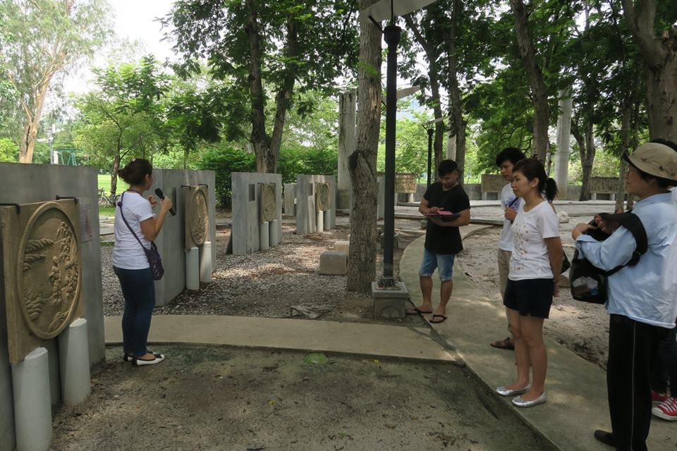 ภาพ เพลินธรรมนำชมกับคุณโบ พี่นีและพี่แห้ง เมื่อบ่ายวานนี้ที่สวนโมกข์กรุงเทพ เริ่มจากหน้าป้าย ไปสวนพุทธธรรม กลับมาภาพพุทธประวัติหินสลัก อัตตภาพนาวา