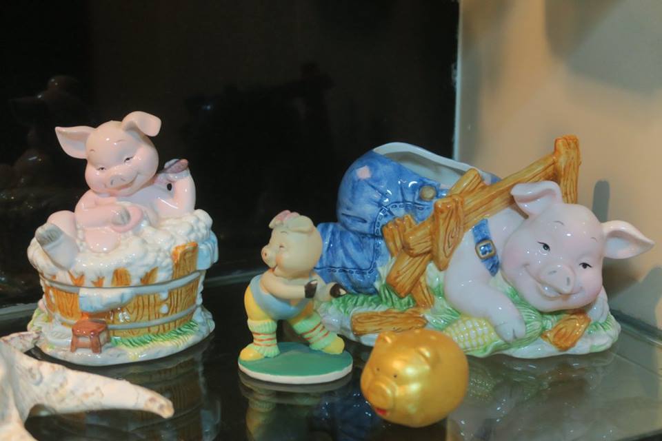 ในห้องน้ำ มีหมูหลายตัวที่แม่ชอบซื้อและพวกเราก็ชอบให้แม่ตามปีเกิดของแม่