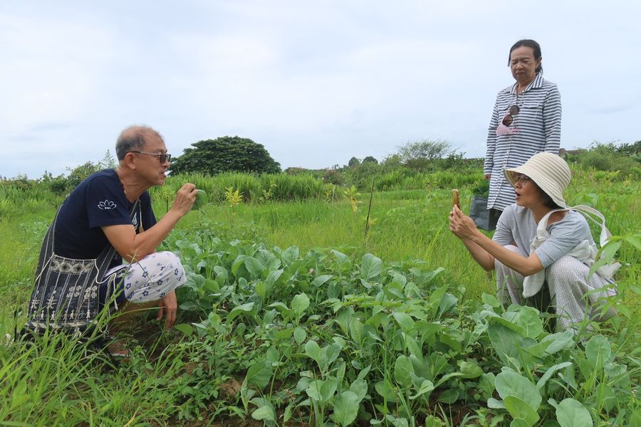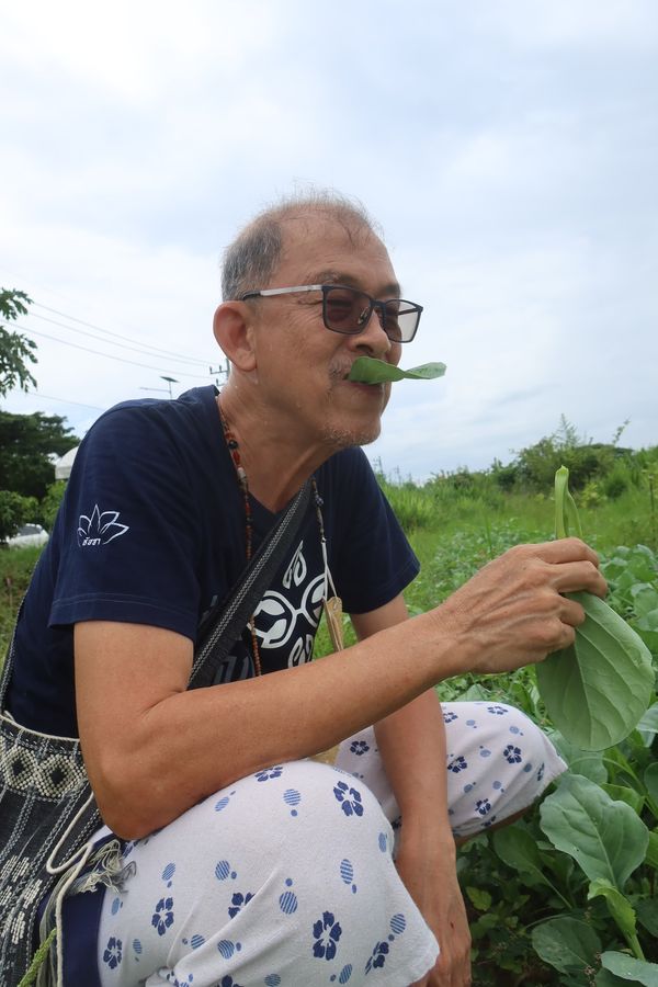 สวนนี้ ปลูกปลอดสารสิ้นเชิง ก็เลยสาธิตกินสดกันกลางแปลงเลย