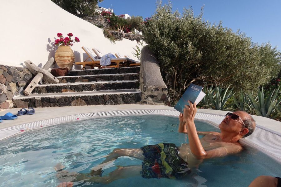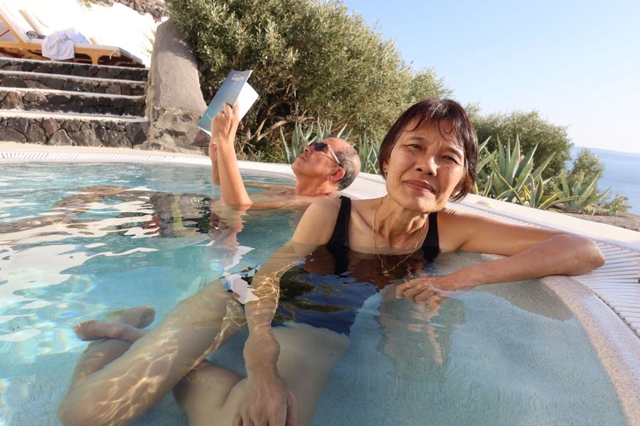 จากซานโทรินีไปลงเอเธนส์ แล้วแวะกินที่โดฮา
