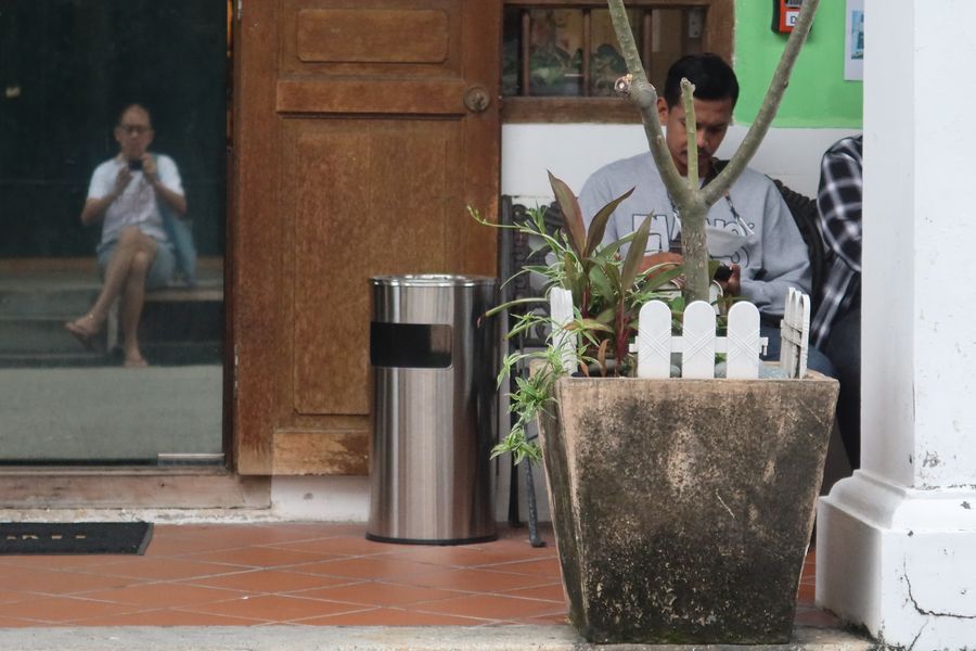 ลูกน้องอย่างหมอนี่ ก็ออกมาเดินแล้ว รอแล้ว จนนั่งรอซะที่ตรงทางเท้า