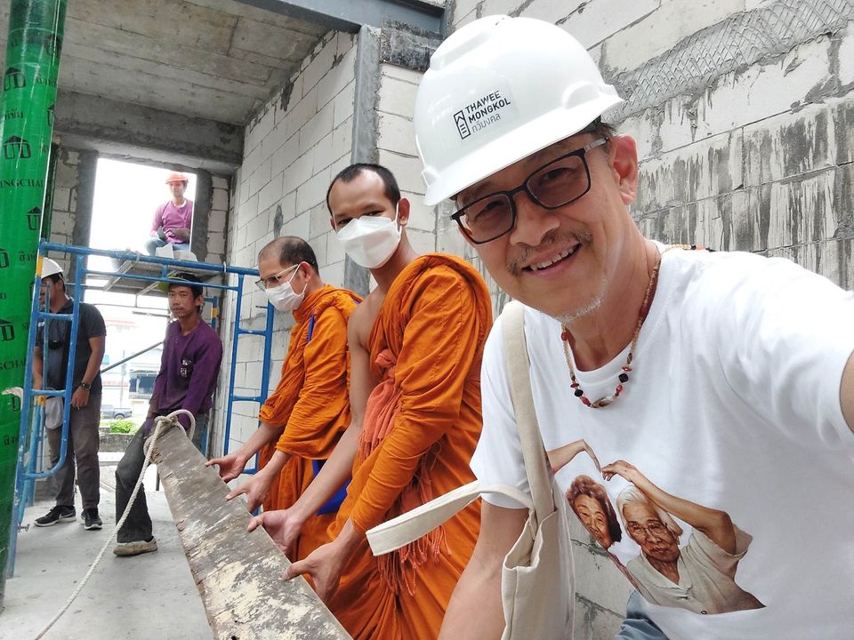 แล้วนิมนต์พระท่านมาร่วมยกขื่อตงอกไก่ของตึกยาวบวรนครลง