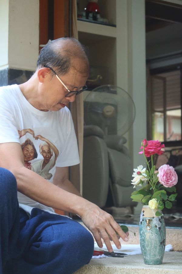 ส่วนดอกไม้ก็ตัดกุหลาบที่ Jongsuk Kongsen เพิ่งเอามาให้ไว้