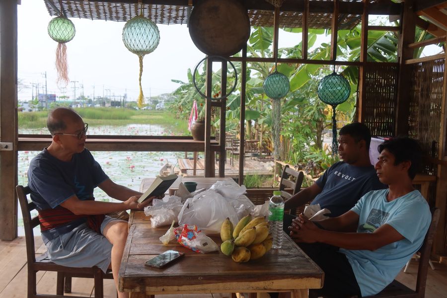 วานนี้ที่ซื้อไก่ทอดกับข้าวเหนียวไปนั่งกินกันที่ศาลาริมบึงบัวของสวนพงษ์บวร