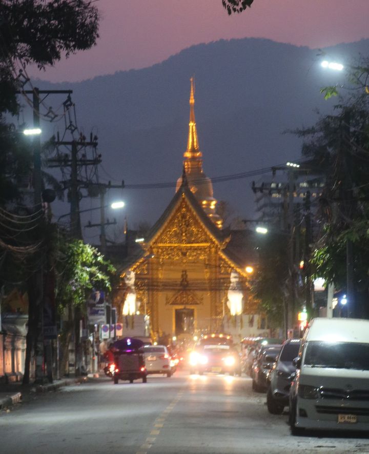 ตอนก่อนขึ้นรถ เห็นเจดีย์วัดพระสิงห์ทาบทิวดอยสุเทพงามมาก