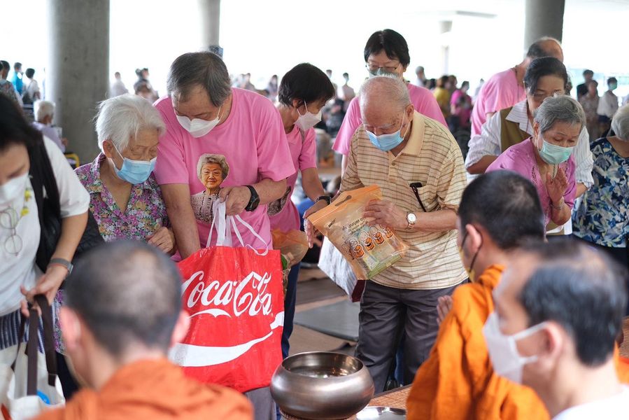 ก็เหมือนพาแม่พาน้าพามาทำบุญใส่บาตร