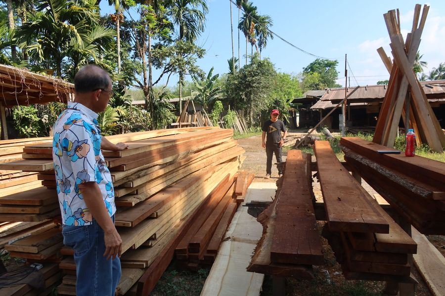 อย่างบ่ายตะกี้ มีให้ไปดูกองไม้ #จำปาทอง ที่เลื่อยเตรียมไว้ปูพื้น #ตึกยาวบวรนคร