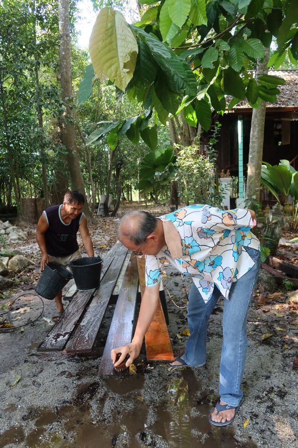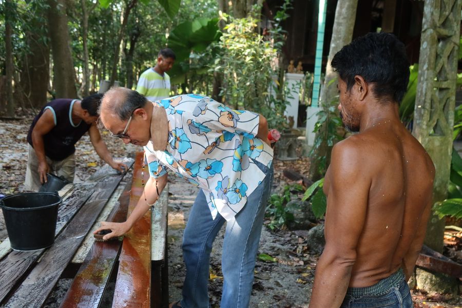 พอดีชาวที่นั่นกำลังช่วยกันล้างทำความสะอาดอยู่ ก็เลยลงมือด้วย