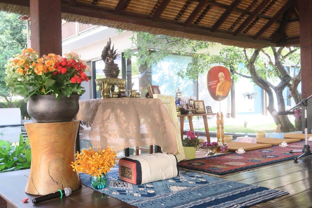 ยืมอาสนะกับตาลปัตรและกระโถนจากสวนโมกข์กรุงเทพ