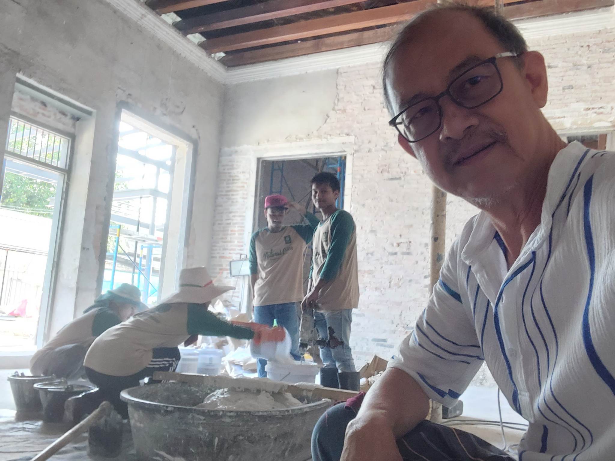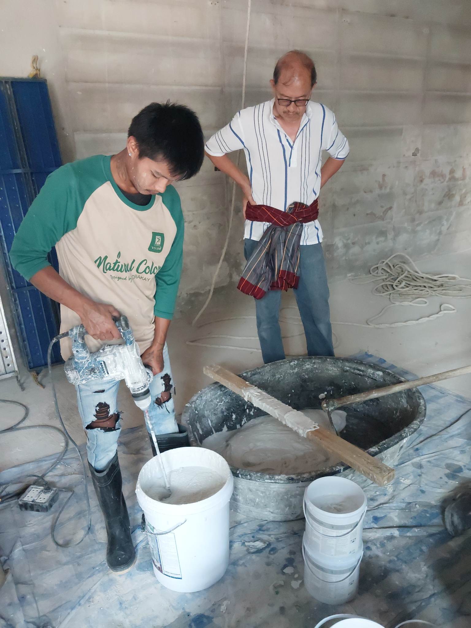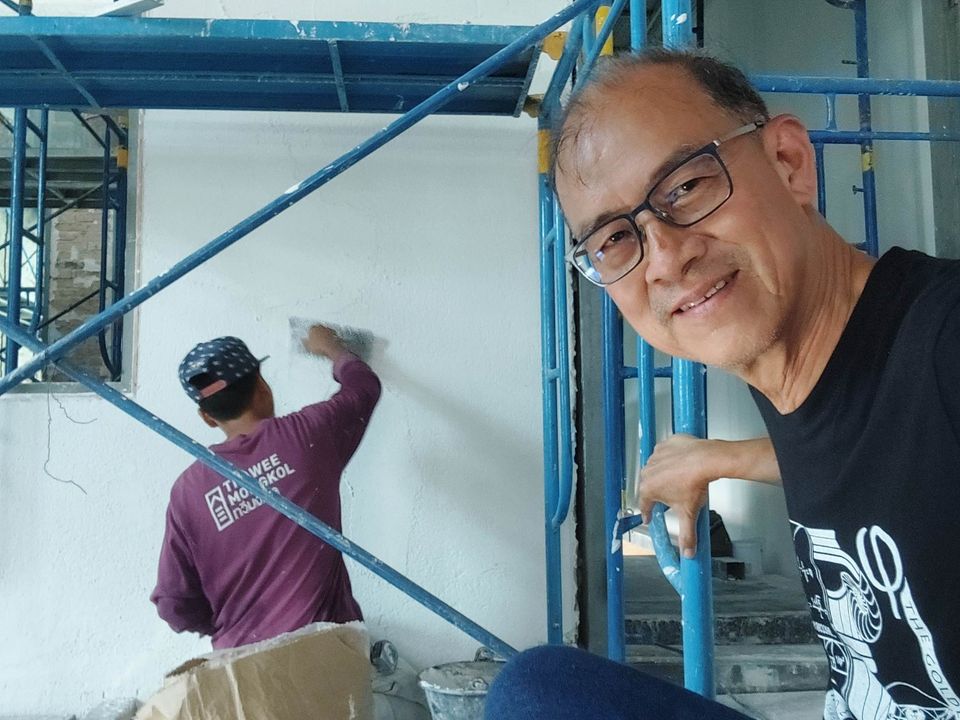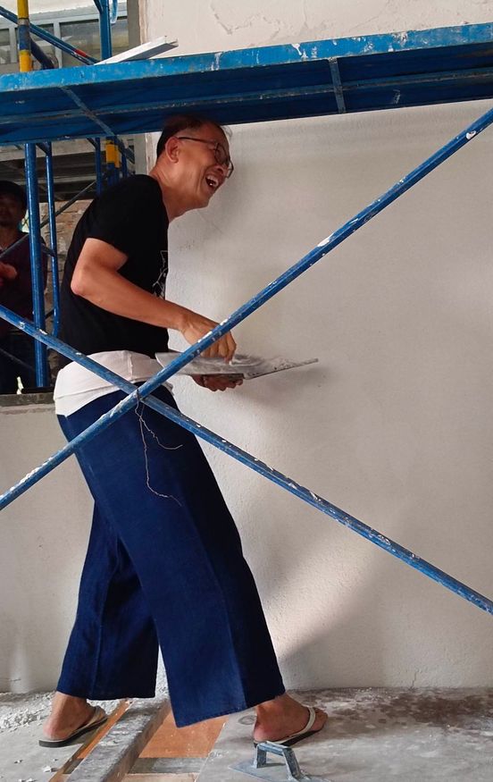 ว่าแล้วก็จัดปูนกับไม้ฉาบให้เลย