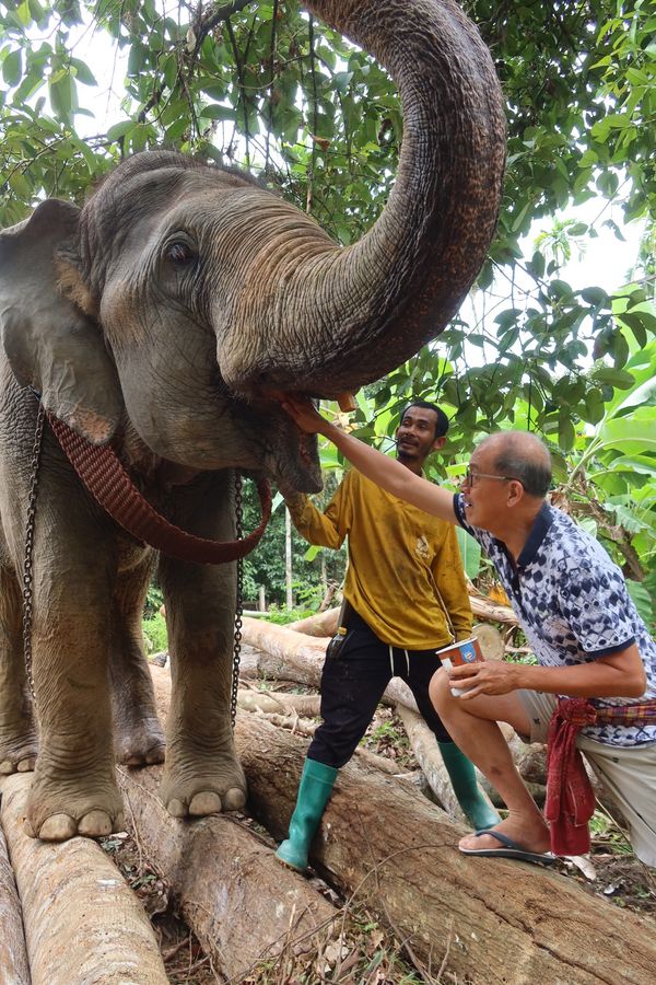 ความที่เจอกันมาแล้วหลายหนจนรู้ว่าช้างบ่อทองนี้ชอบไอติม