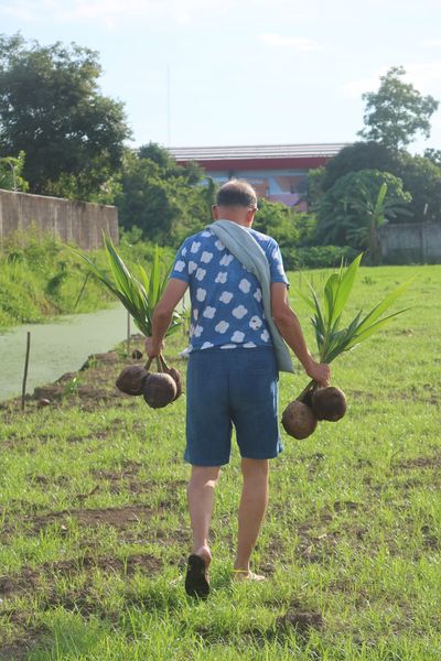 จากนั้นก็ปลูกต่อ ๆ กันตามแนวจบเต็มร่องได้ ๕๘ ต้นครับ
