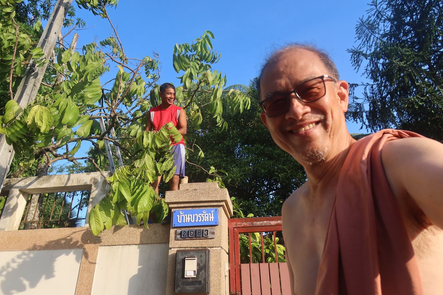แถมบ่ายนี้จะมีการบุญในบ้าน ก็เลยชวนกันแต่งต้นไม้นี้ที่หน้าปากตู