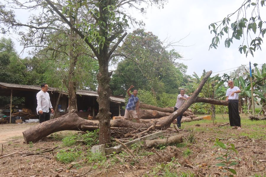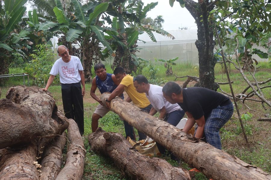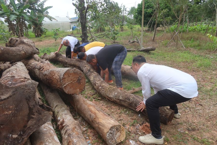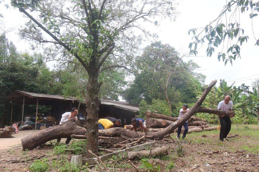 นายหัว Khamjiang Panitdee เรียกระดมทุกคนมาช่วยกันเขี่ยท่อนไม้เหล่านี้