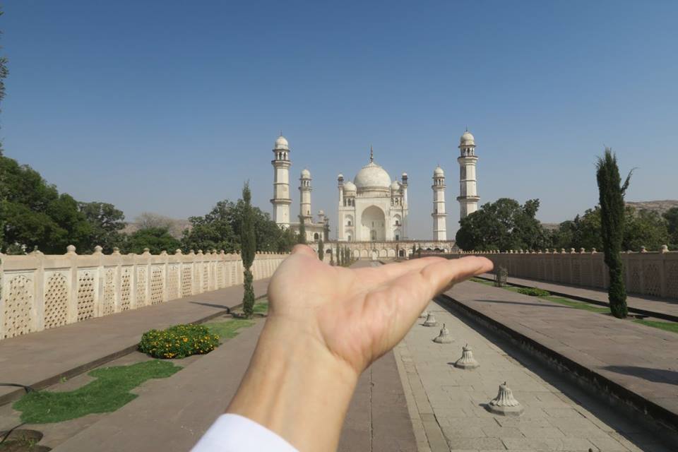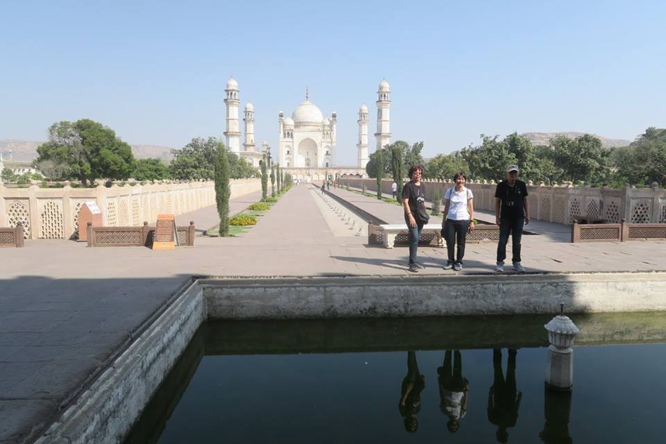 เท่าที่เคยผ่านมาเมืองนี้เมื่อถูกถามว่าไปไหม ทัชมฮาลน้อย ? ผมมักตอบว่าไม่ดีกว่า เพราะไปทัชมาฮาลที่อัครามาแล้ว แถมแถวนี้น่าจะเข้าถ้ำให่มากไว้ก่อนดีกว่า แต่คราวนี้มีเวลา จึงแวะกันเป็นรายการสุดท้าย ผมจำชื่ออย่างเป็นทางการและชื่อเล่นของทัชมาฮาลน้อยนี้ไมไ่ด้ รู้แต่ว่าสร้างโดยหลานชายของชาห์ จาฮาล ผู้สร้างทัชมาฮาลให้พระนางมุมตัส มเหสีที่ล่วงลับ แล้วถูกเอารังเซ็บลูกชาย จับขังตะรางให้ได้นั่งดูจนสุดชีวิต ในขณะที่ลูกชายคนหนึ่งของเอารังเซ็บที่ถูกส่งมาปกครองเอารังคบาด ที่หมายถึงนครแห่งเอารังเซ็บ มีความรักแม่และระลึกถึงปู่ จึงสร้างสุสานนี้เพื่อฝังแม่ซึ่งเป็นเมียคนหนึ่งของเอารังเซ็บ ตามต้นแบบของปู่ที่สร้างให้ย่า