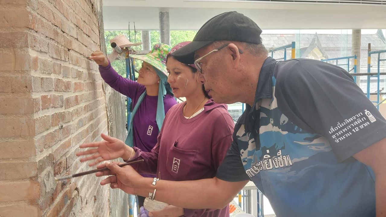 พอได้จังหวะทำเป็นขอจับเกรียงจับภู่กันถ่ายรูปบ้าง