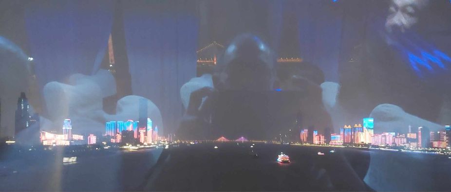 ก็เพราะตอนข้ามสะพานกลับที่พัก เห็นตึกสองฝั่งน้ำแยงซีมีสีแสงอย่างในภาพ