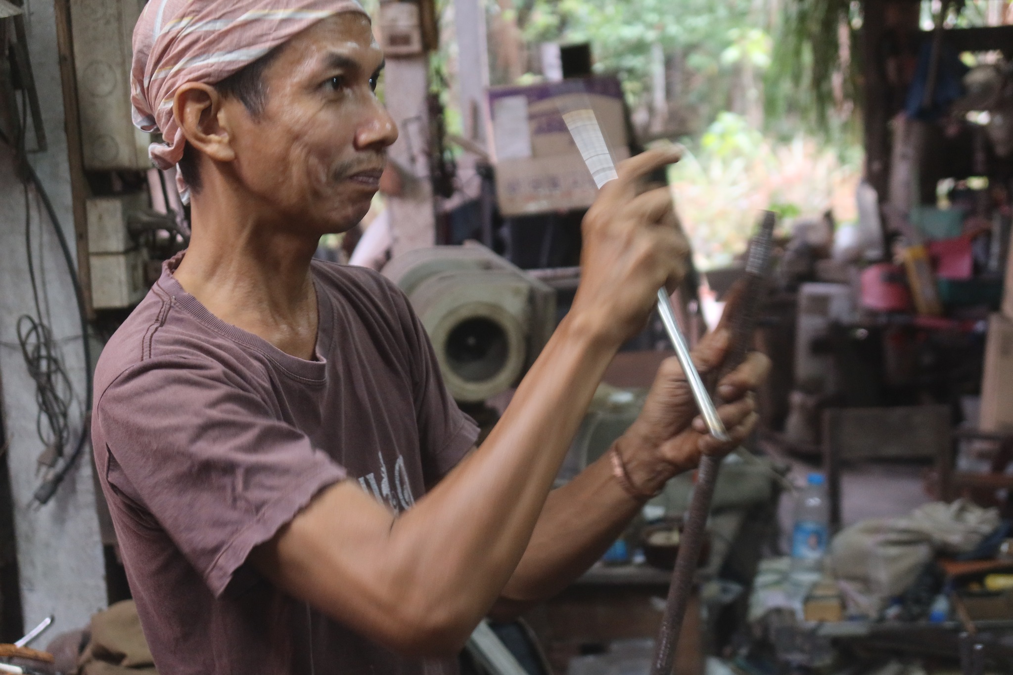 เขาเผาลนแล้วตีดัดบิดสารพัด จนออกมาเป็นกลอนใหญ่กับมือจับที่ไม่ธรรมดา