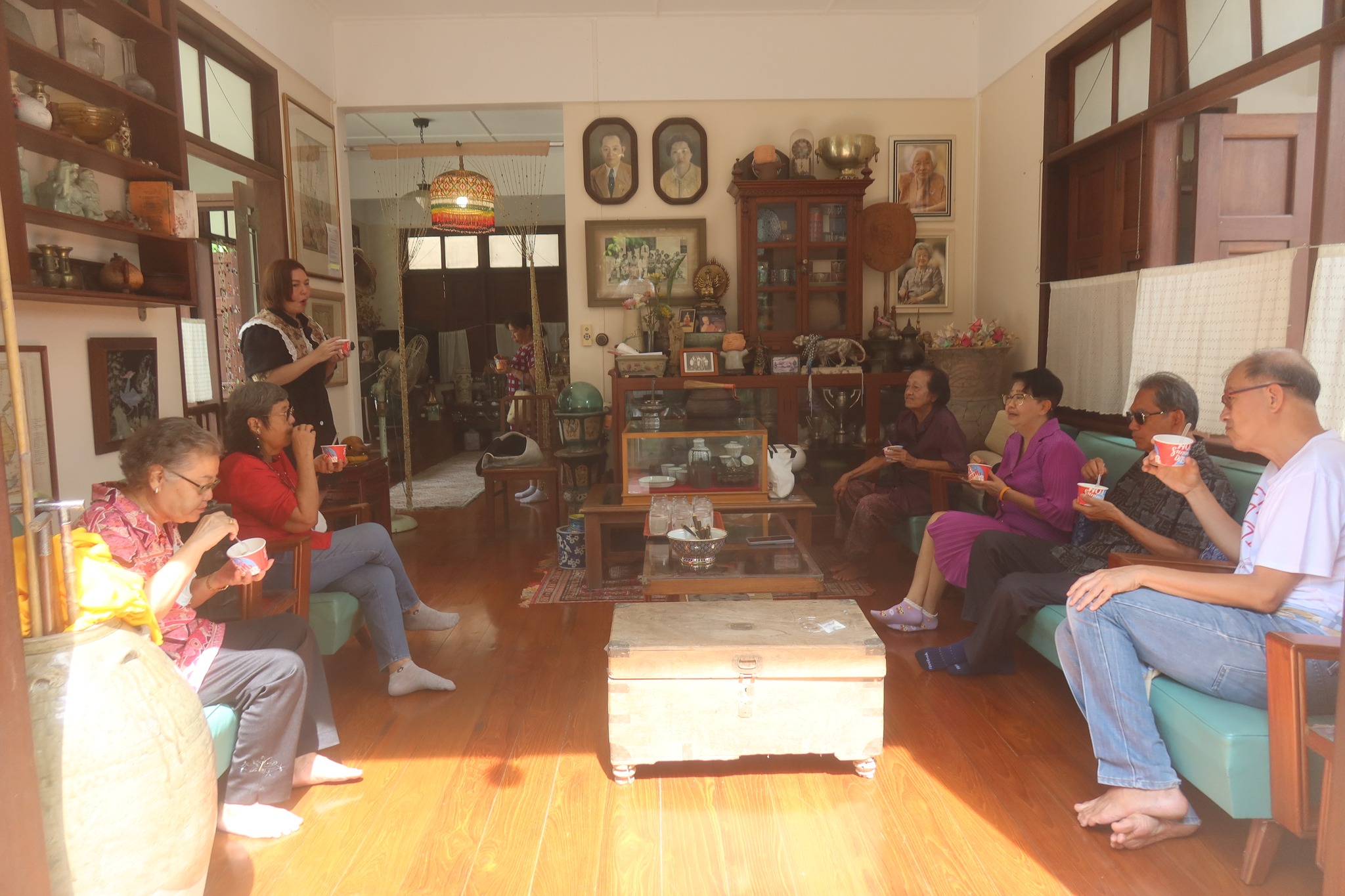 จากนั้นก็ทักทายสนทนากันสารพัด พร้อมกับไอติมเด่นไทยหลังบ้านมาเลี้ยงรับ