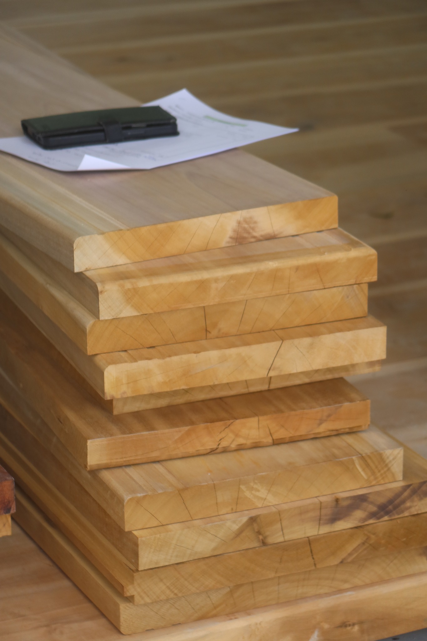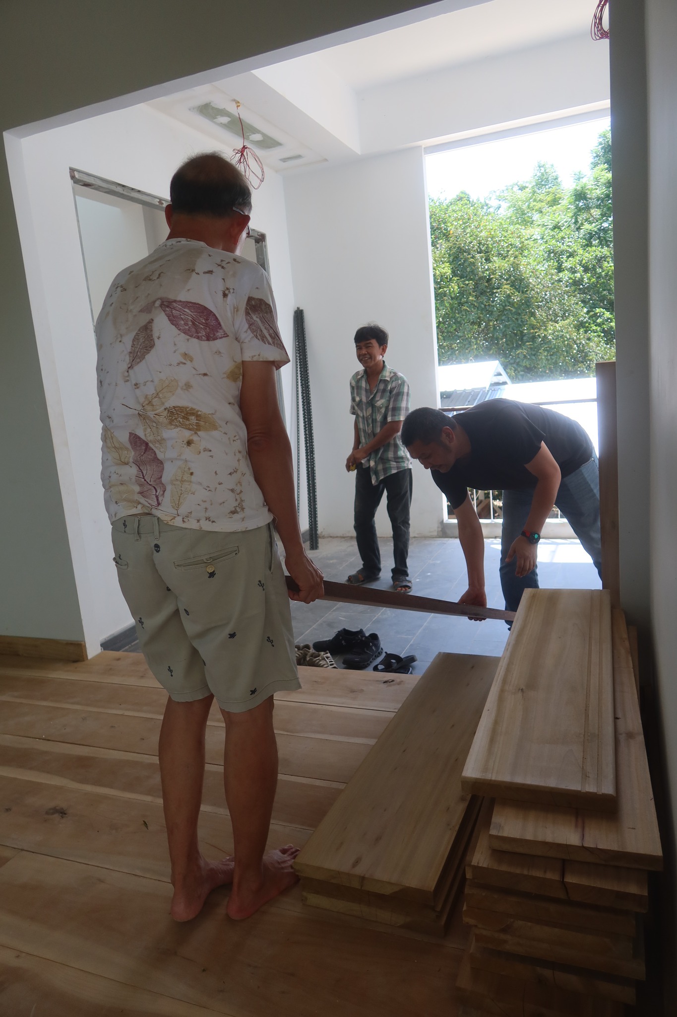 วันนี้ ไม้จำปาทองสำหรับปูขั้นบันไดที่เอาไปรีดไปไสถูมาถึงแล้ว