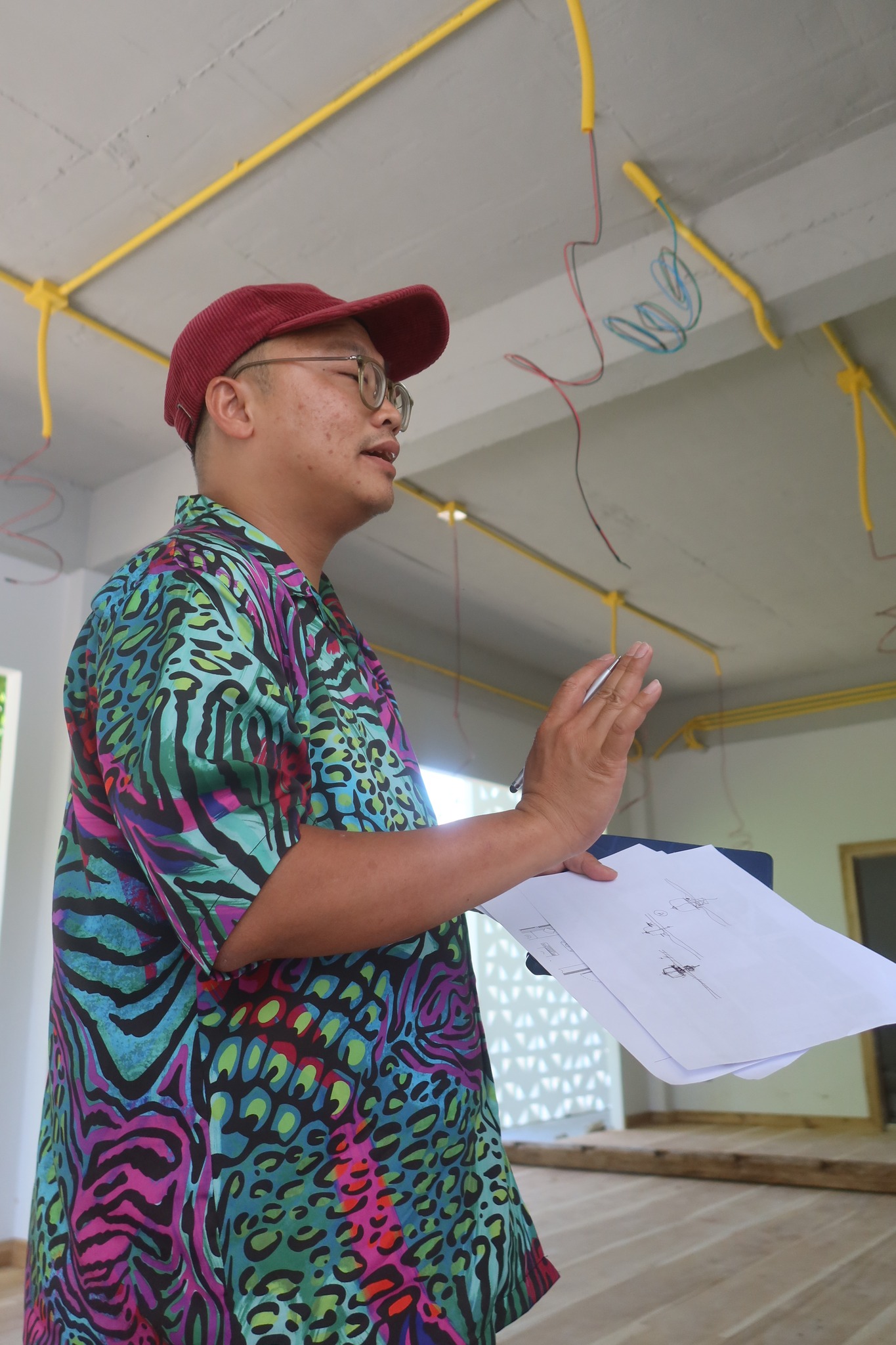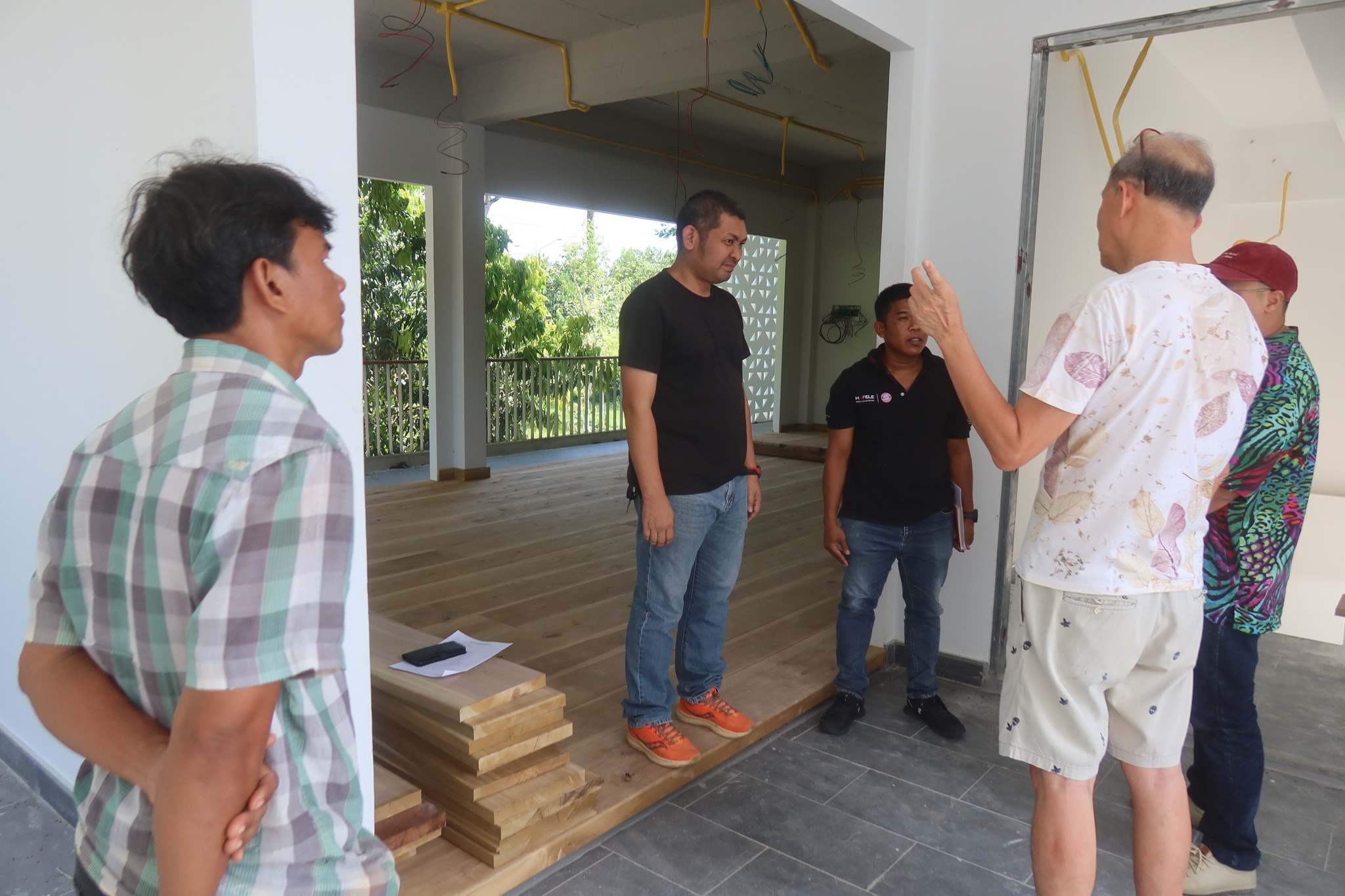 โดยลงเอยว่าช่วงล่าง จะเป็นผิวปูน ขณะที่ช่วงบนจะปูด้วยไม้จำปาทอง