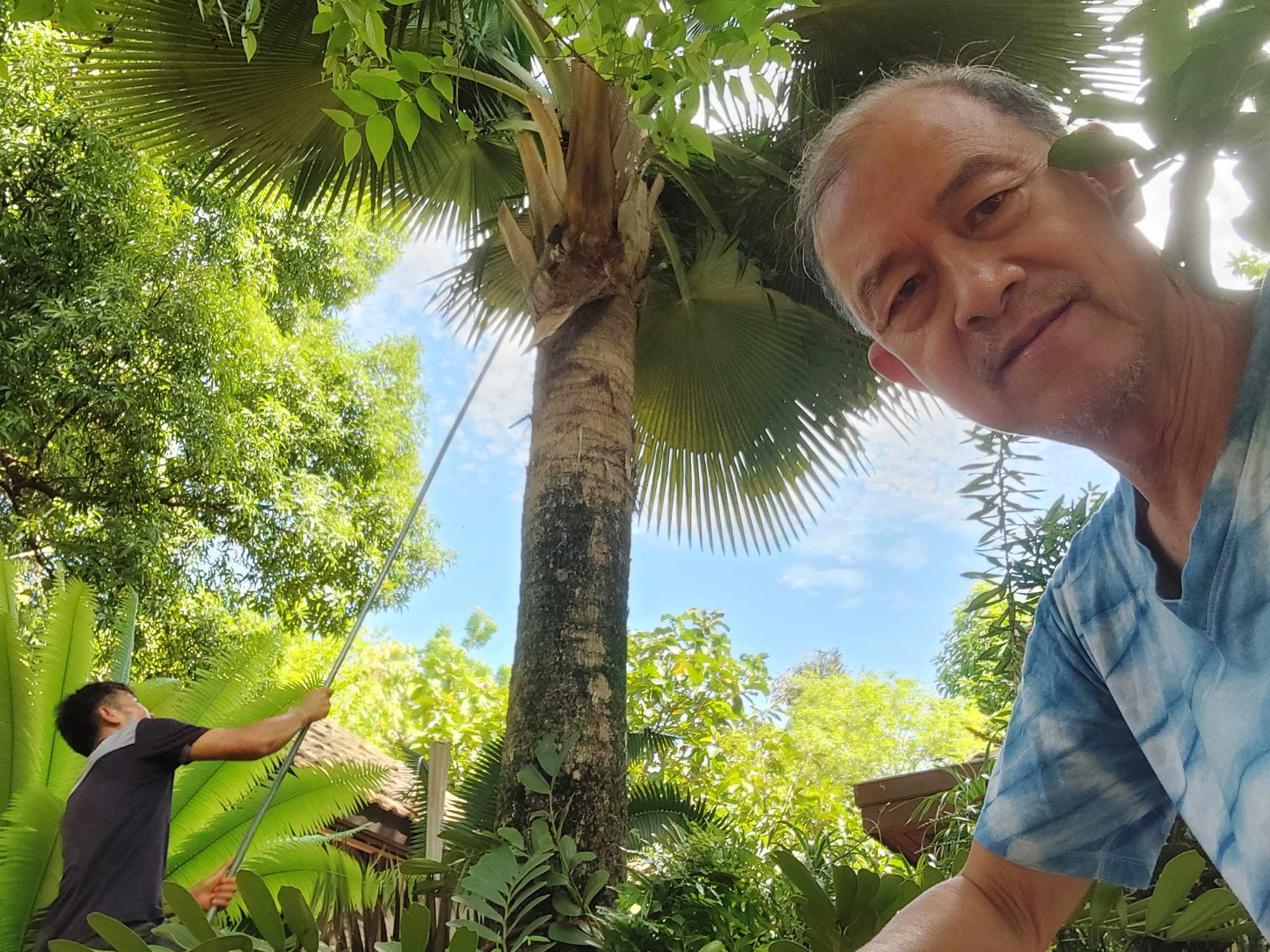 จากนั้นก็ทำงานนั้นงานนี้ ระหว่างดูเขาตัดแต่งต้นเหรียงใหญ่