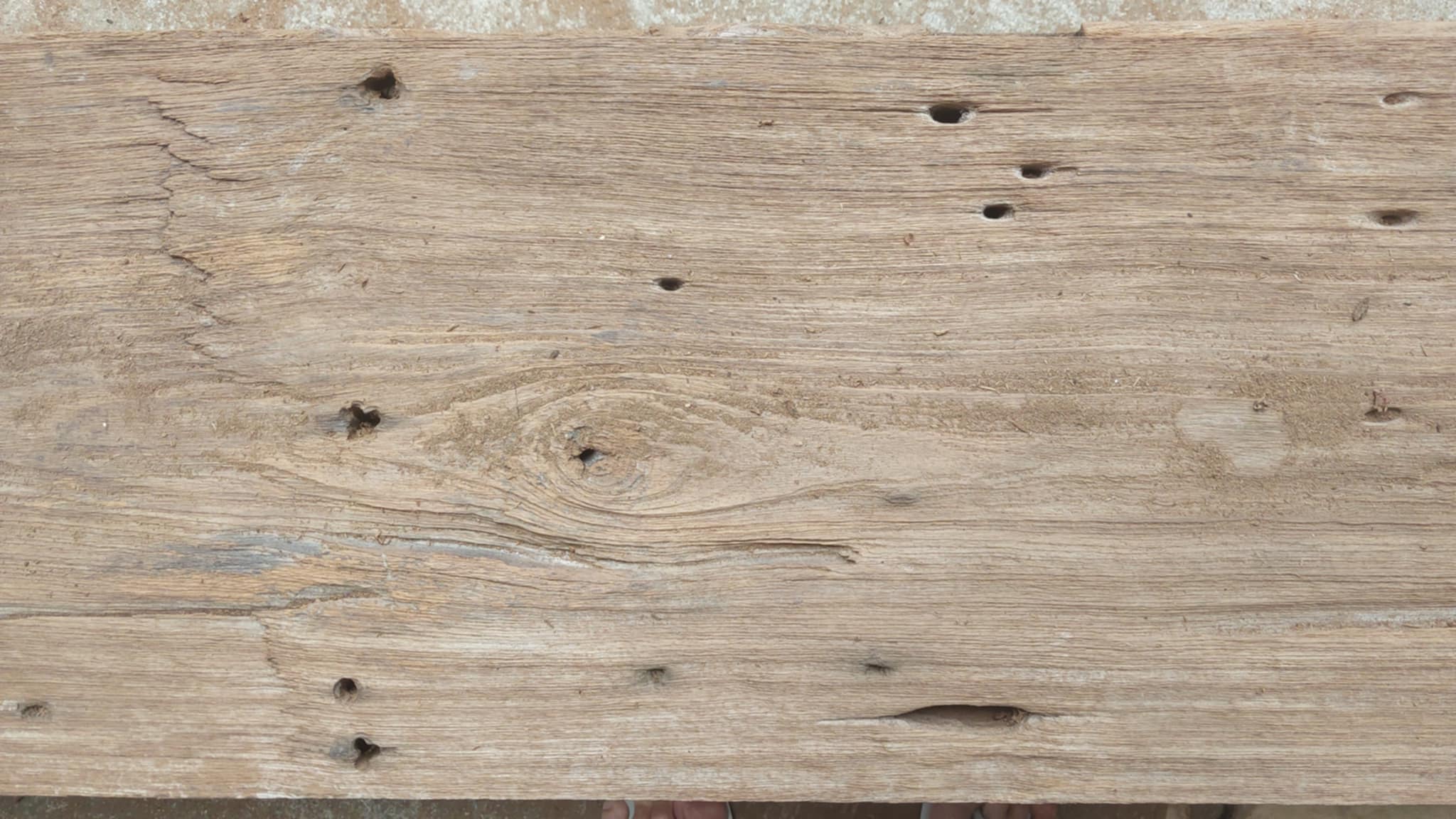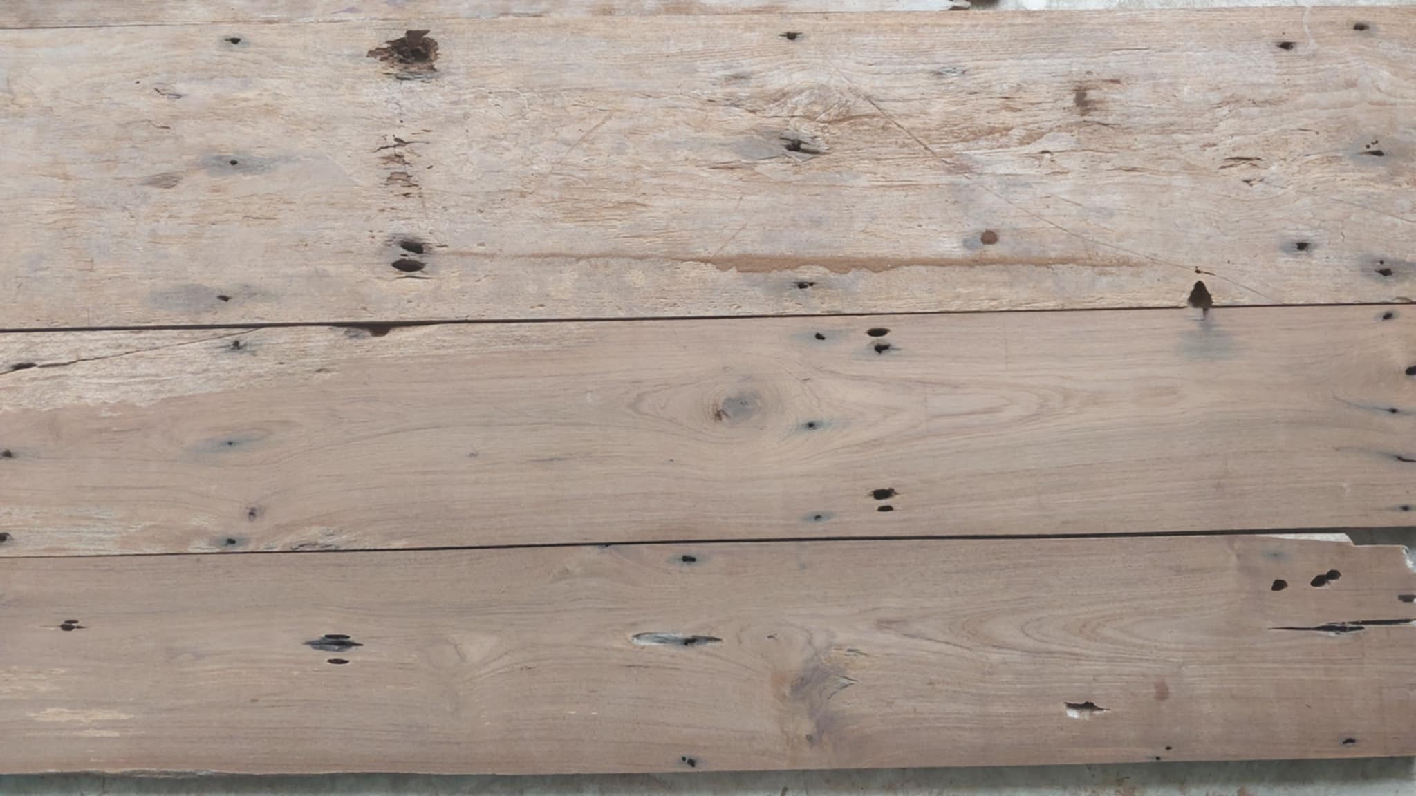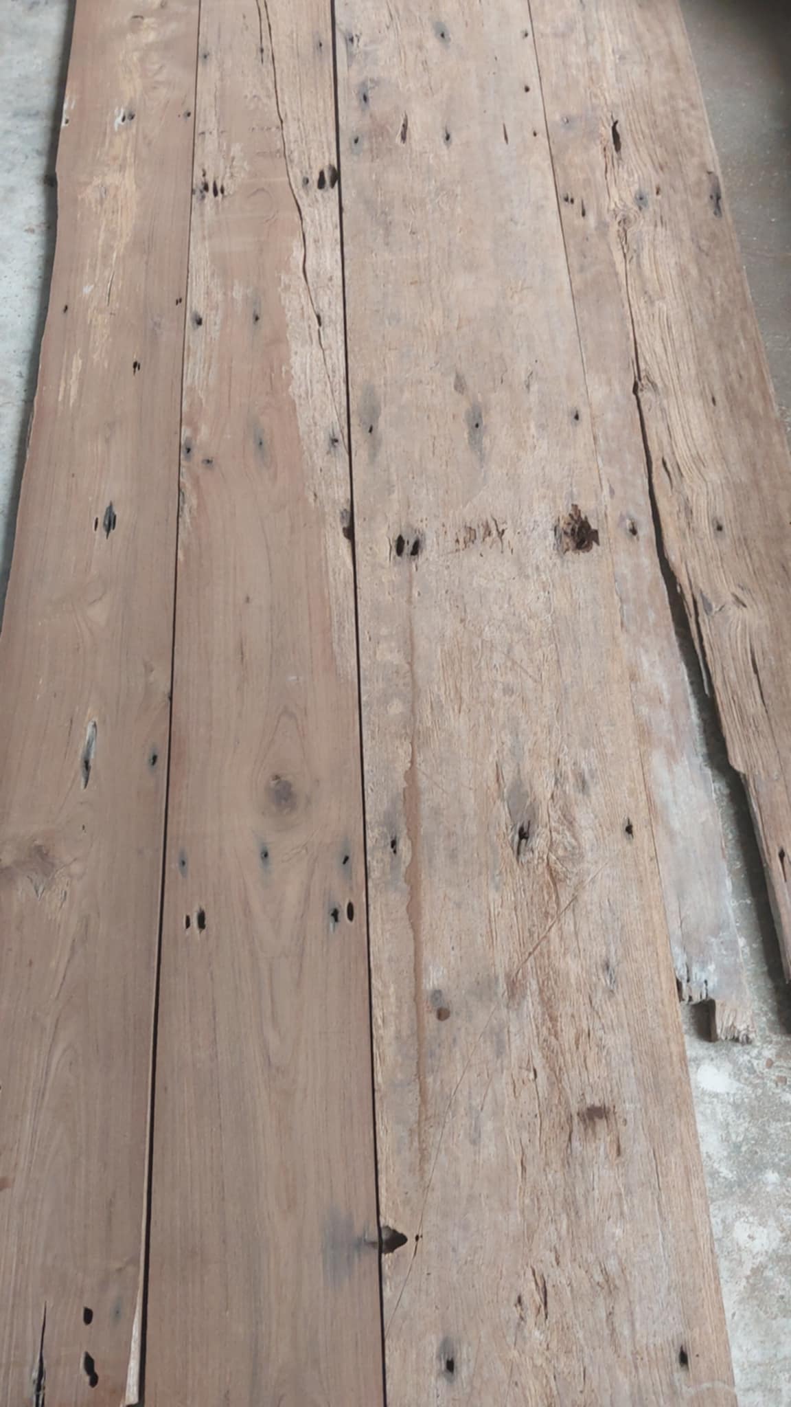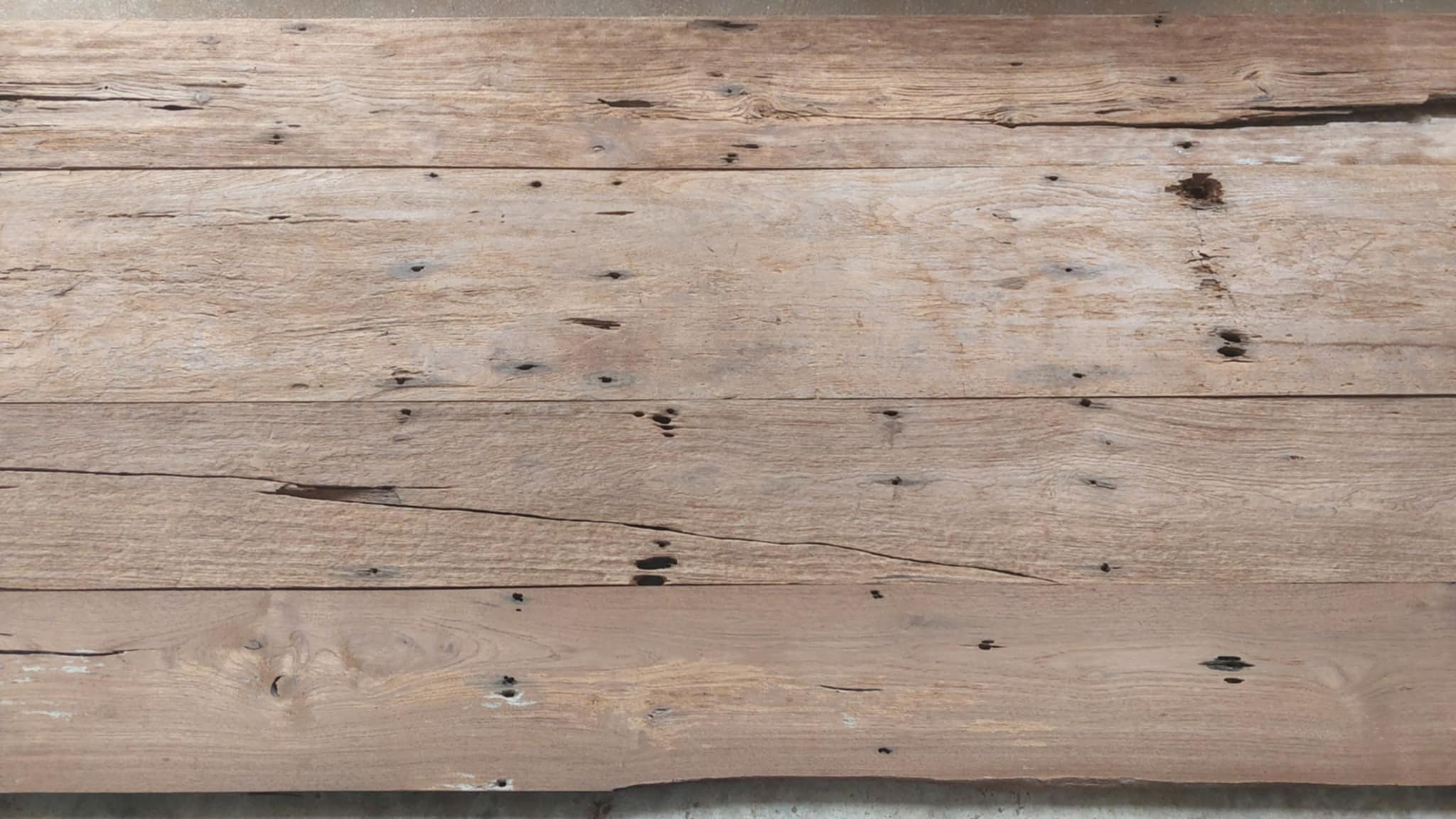 เมื่อรีดขัดรอยสึกกร่อนออก ก็เห็นลายไม้สักเก่าสวยมาก