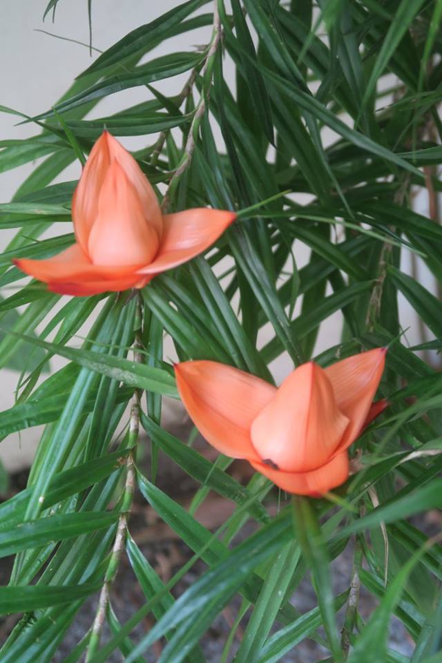 ส่วนดอกสีส้มที่ยังไม่รู้ชื่อทั้ง ๓ ดอก ยังไม่ร่วง