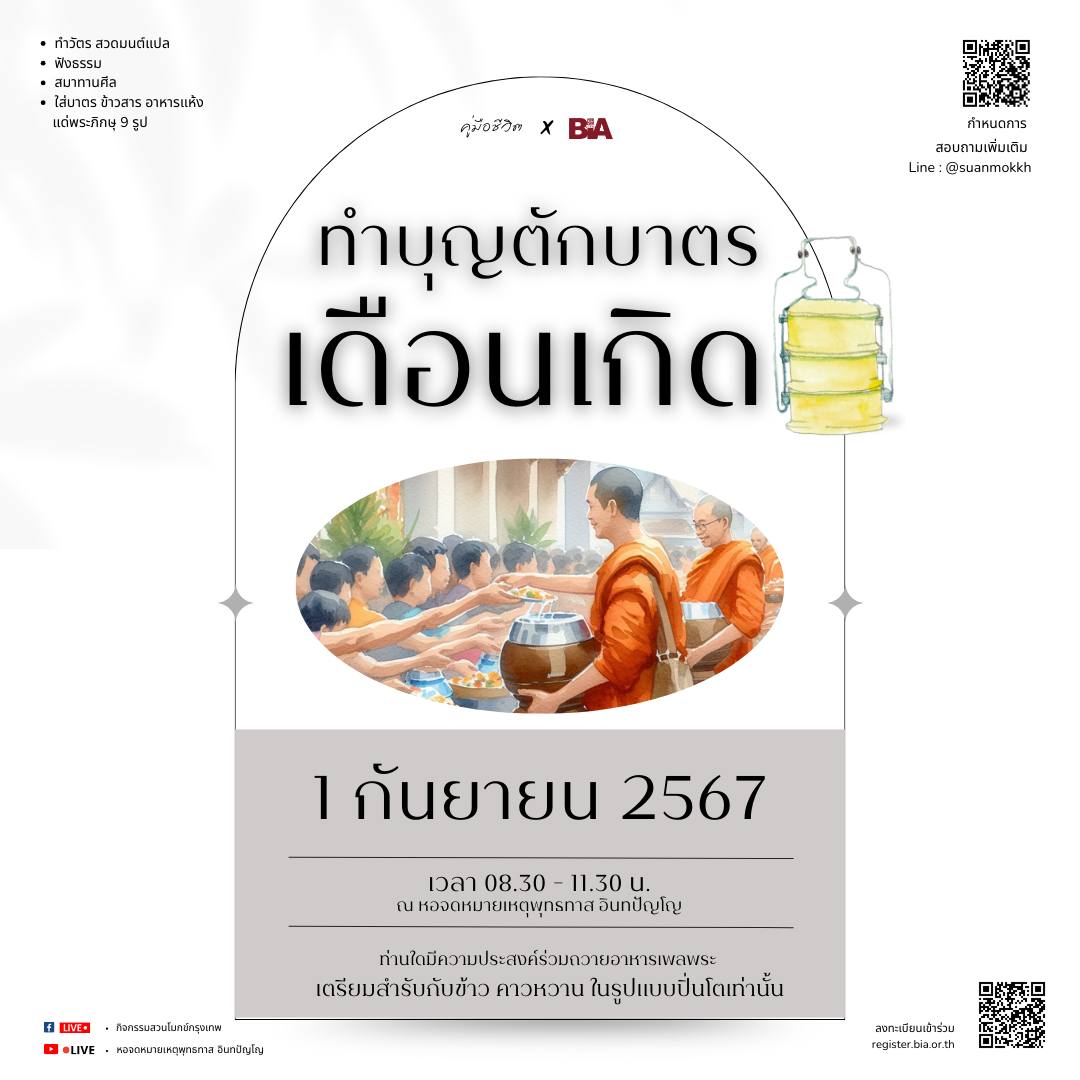 พอดีพรุ่งนี้ที่สวนโมกข์กรุงเทพมีตักบาตรเดือนเกิด