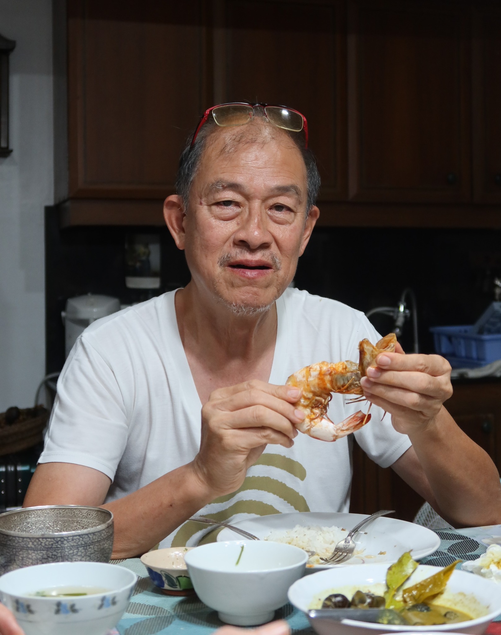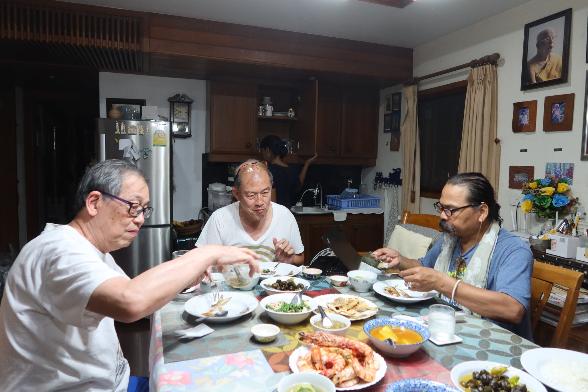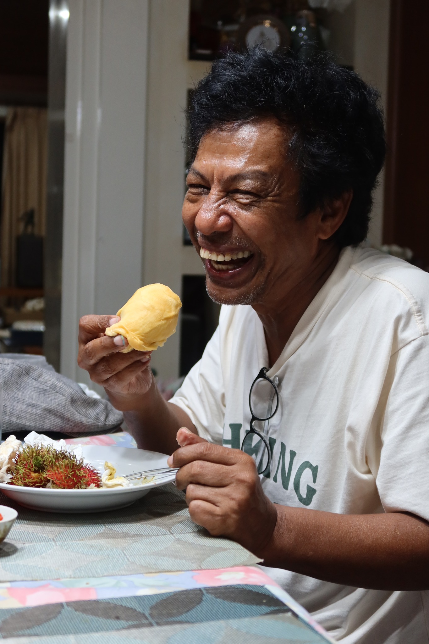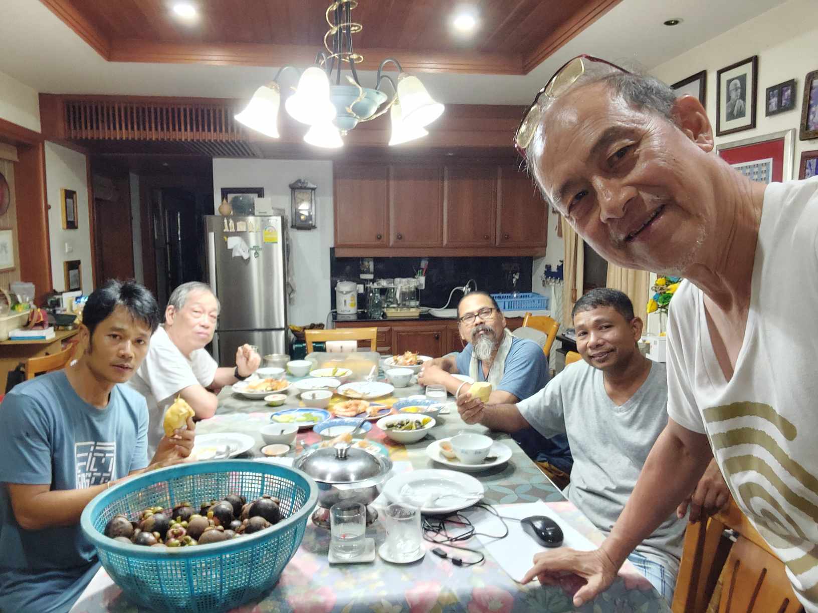 กินกันเท่าที่พอหาได้ มียำผักกูด กุ้งทะเลเผา แกงหอยขม ปลาจาระเม็ดทอด แล้วก็ ทุเรียน ลังคุด ผมเงาะ ฯลฯ