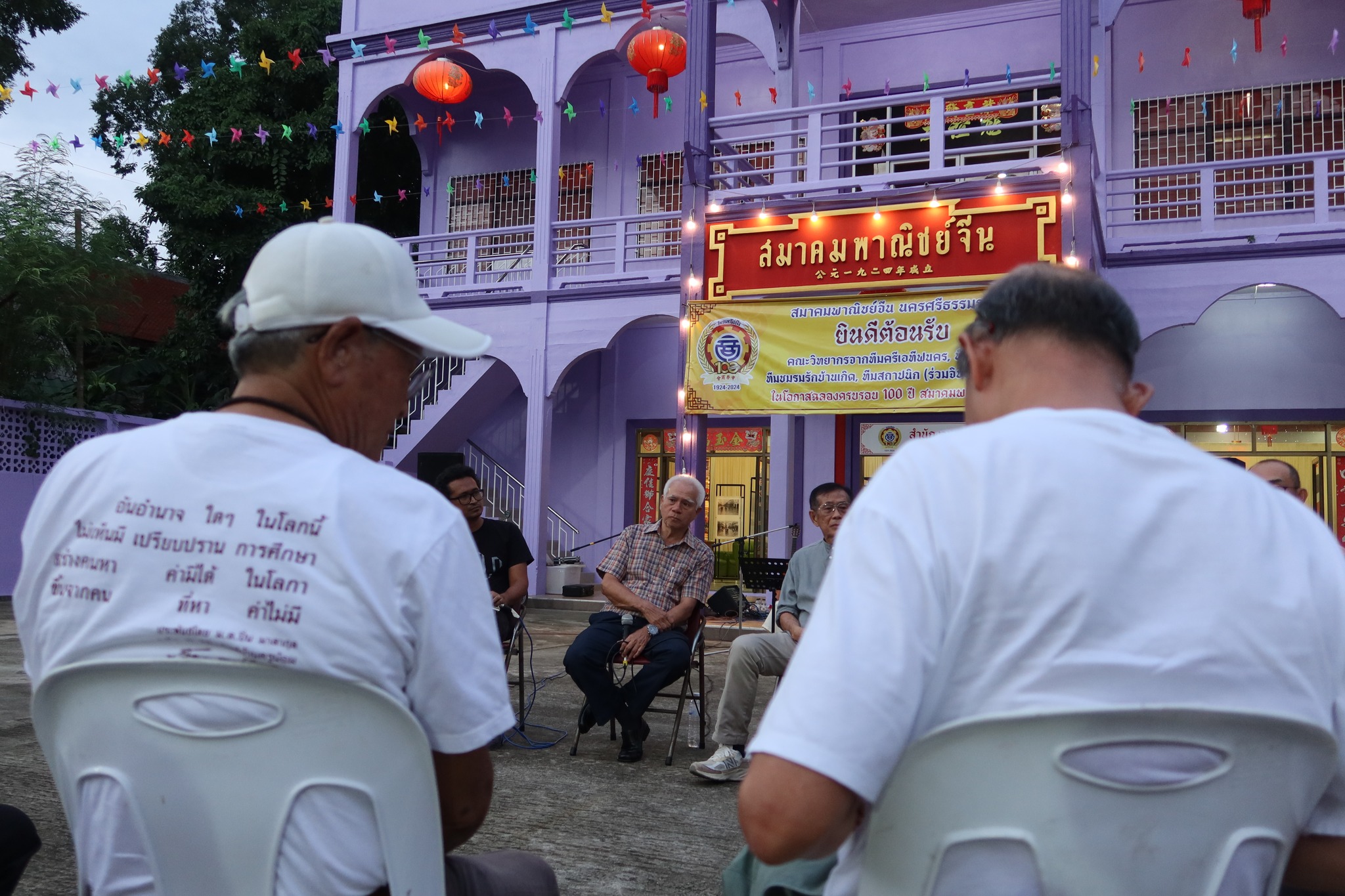พอดีเขาให้นั่งอยู่หน้าอาคารสมาคมพาณิชย์จีนที่น่าวาด