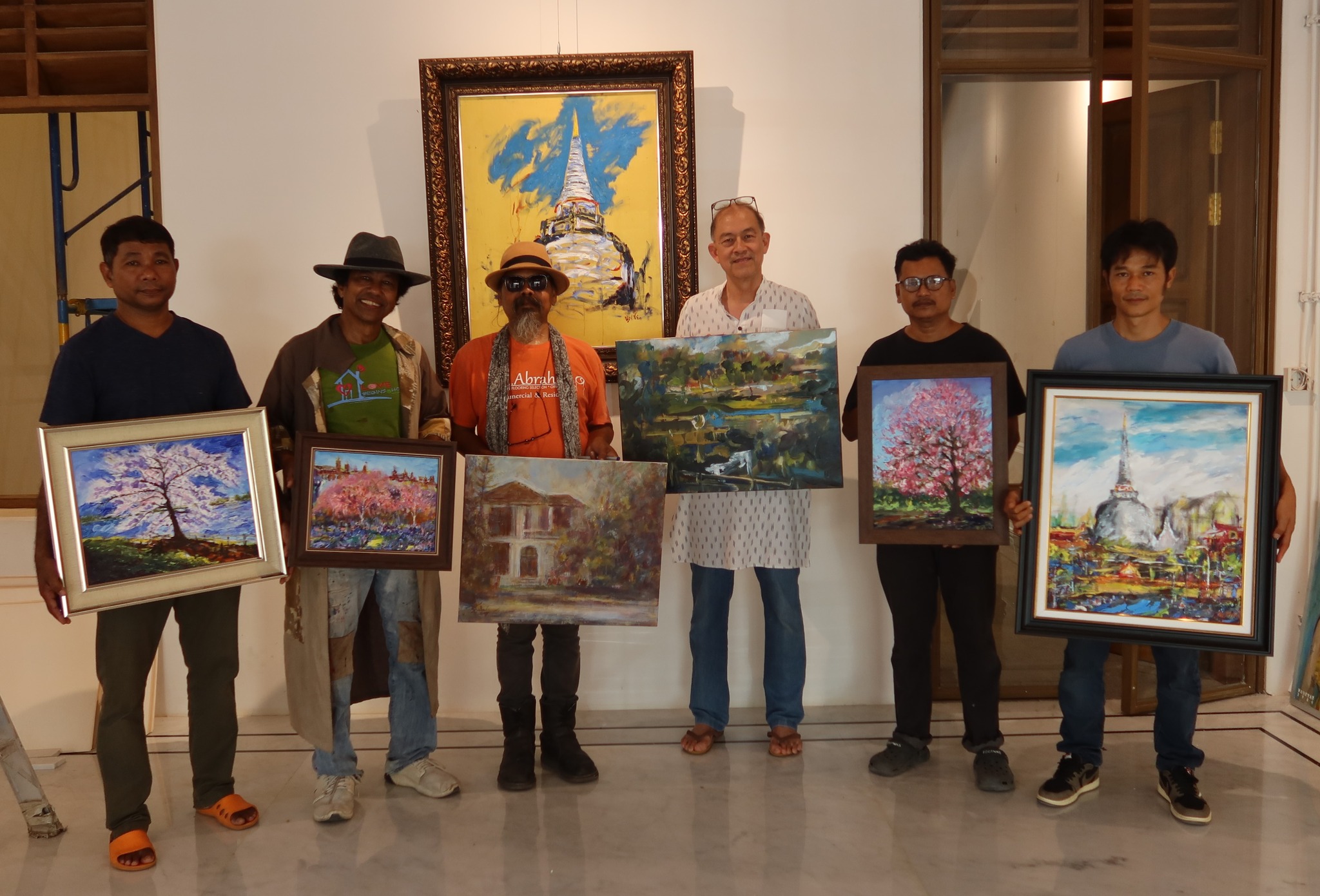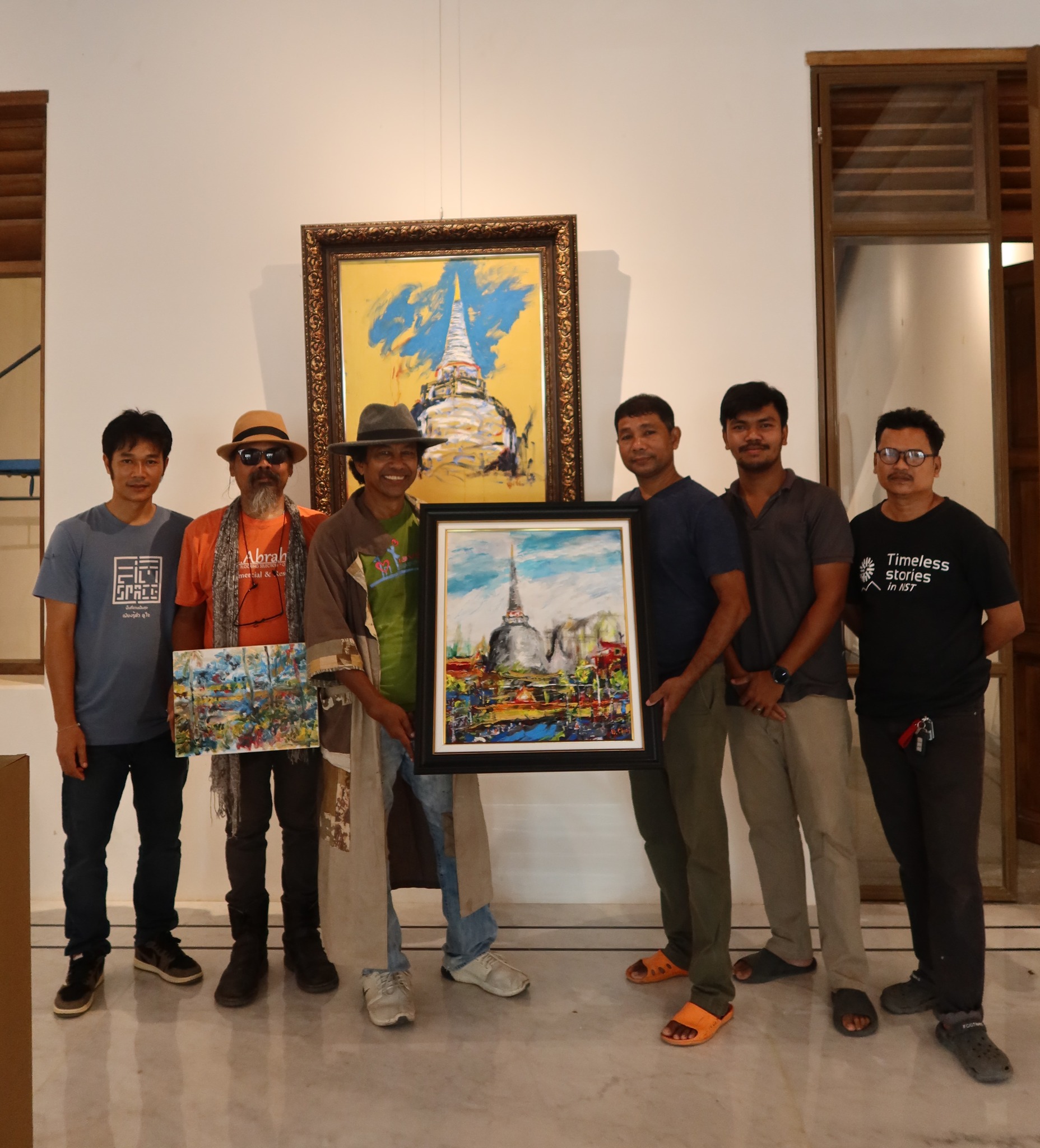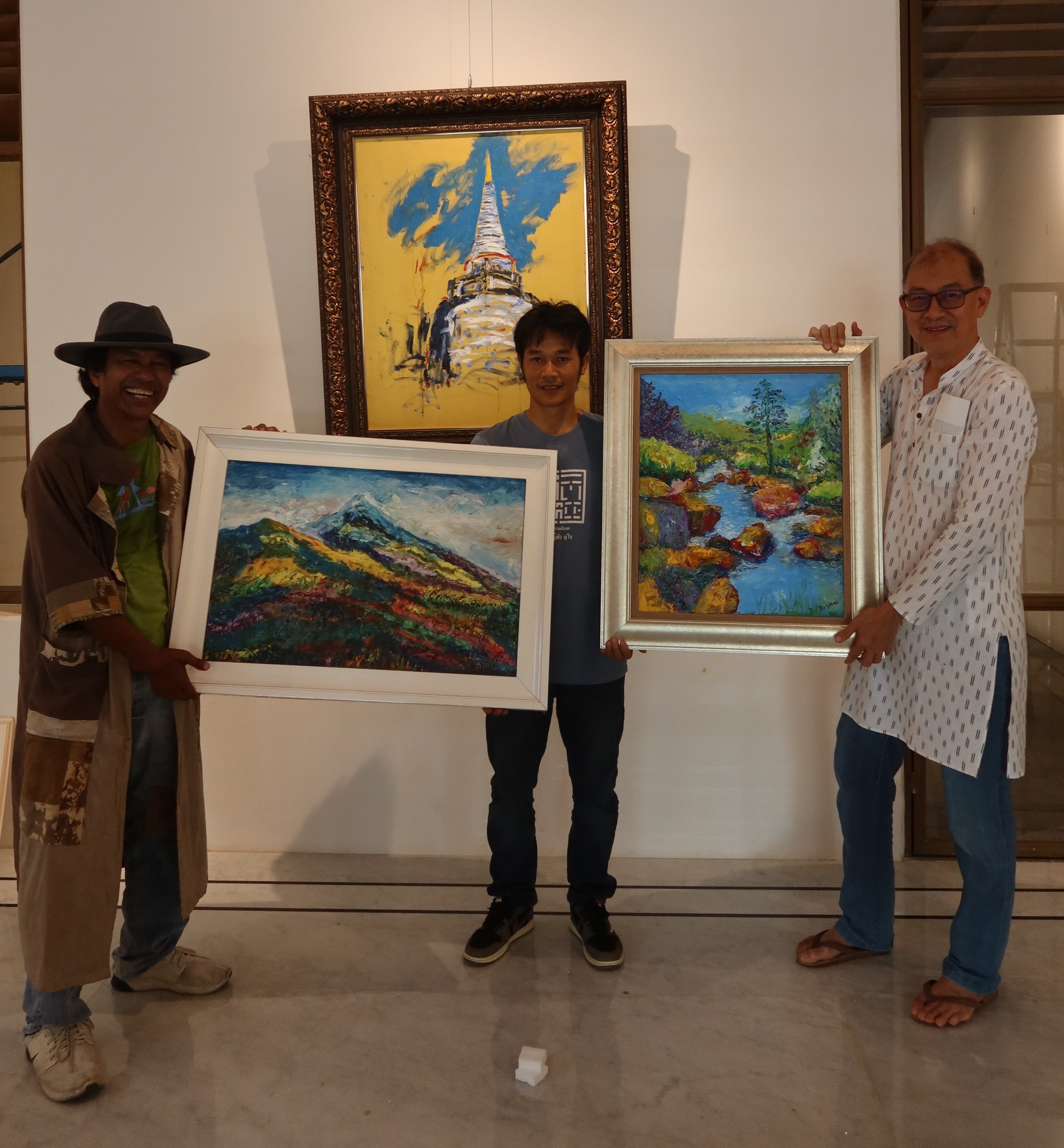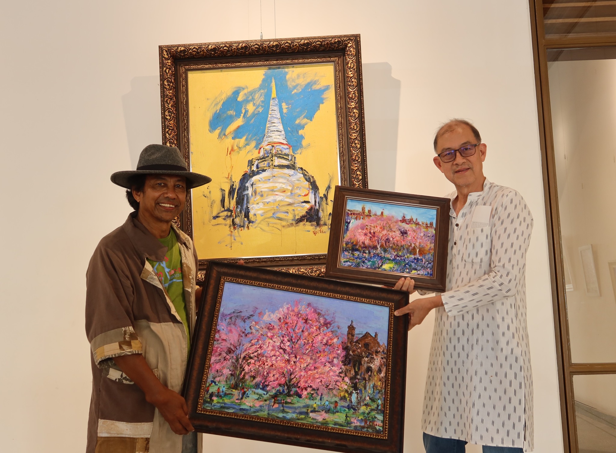 ขณะที่นายหัว Amonpong Rittirong รับมอบอีกรูปพระธาตุที่วาดสดไว้ในที่สุด