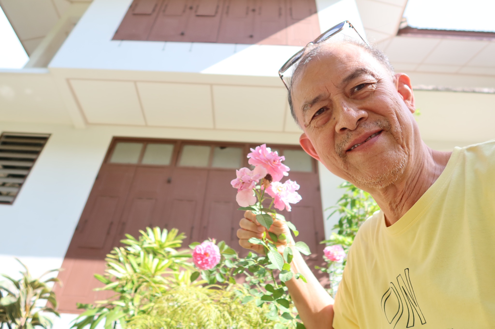 ผมนี้พอดีใส่เลื้อสีเหลือง เจอกุหลาบบานสีชมพูนึกว่าจุฬา