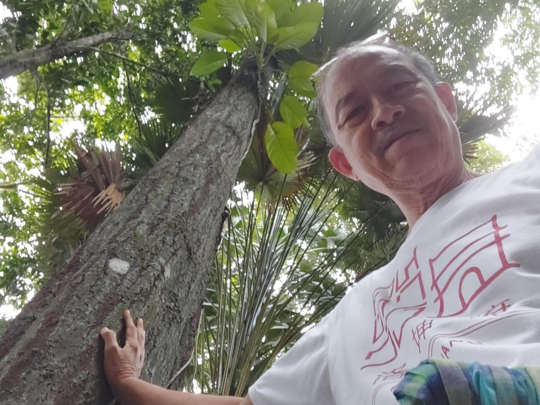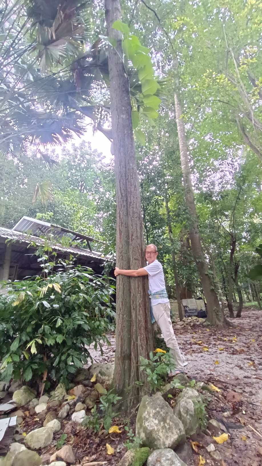 เพราะต้นนี้ที่ปลูกเองเมื่อ ๔๐ ปีก่อน ตอนนี้พอดีโอบแล้วเลยครับ