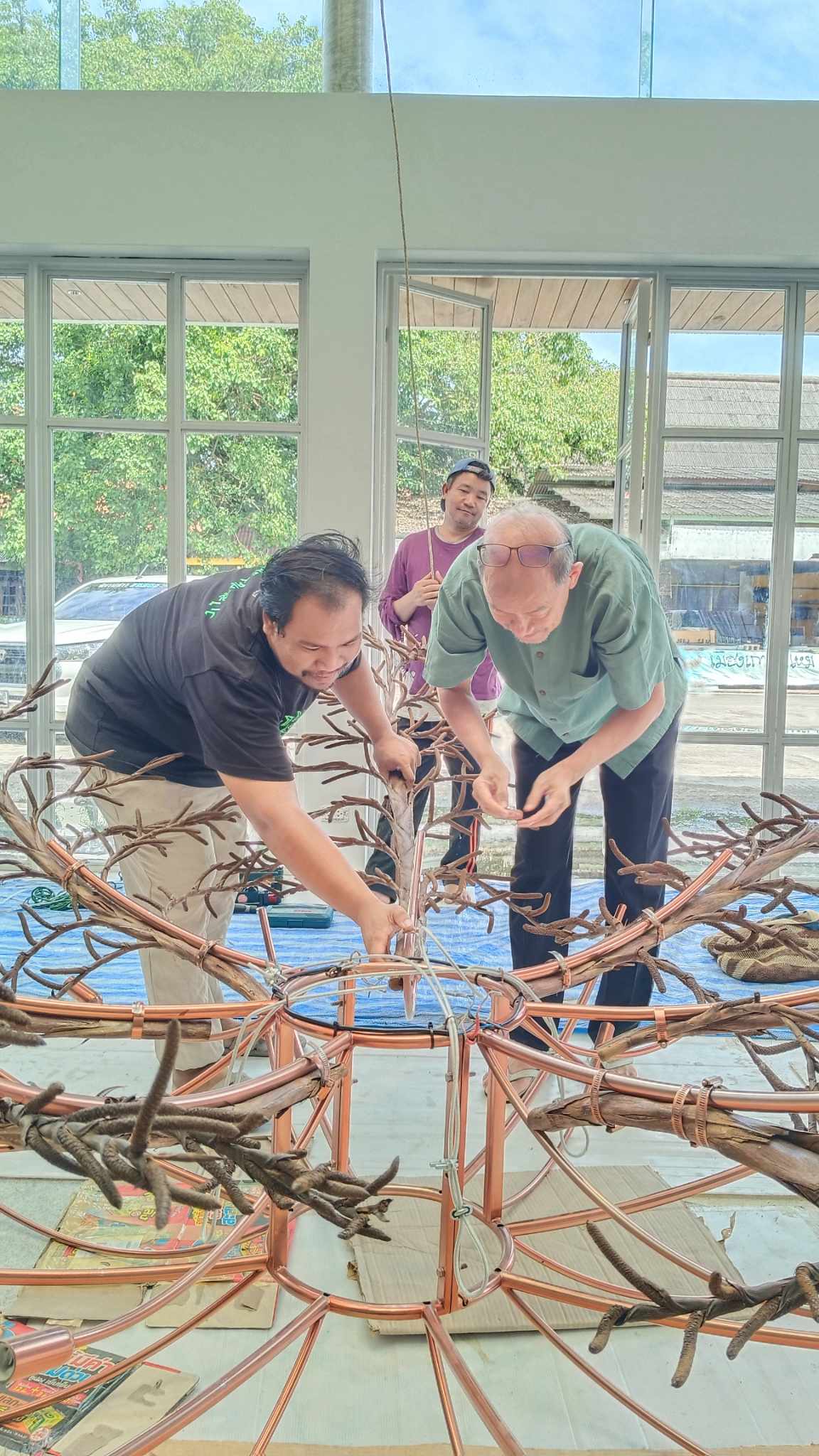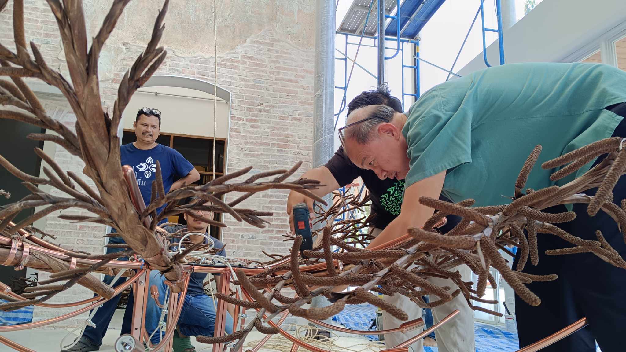 เริ่มตั้งแต่การประกอบช่อดอกหวายทั้ง ๑๕ ให้เข้าช่อใหญ่เป็นสองชั้น