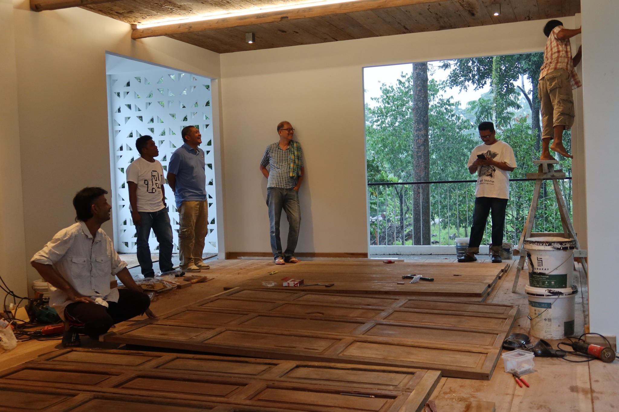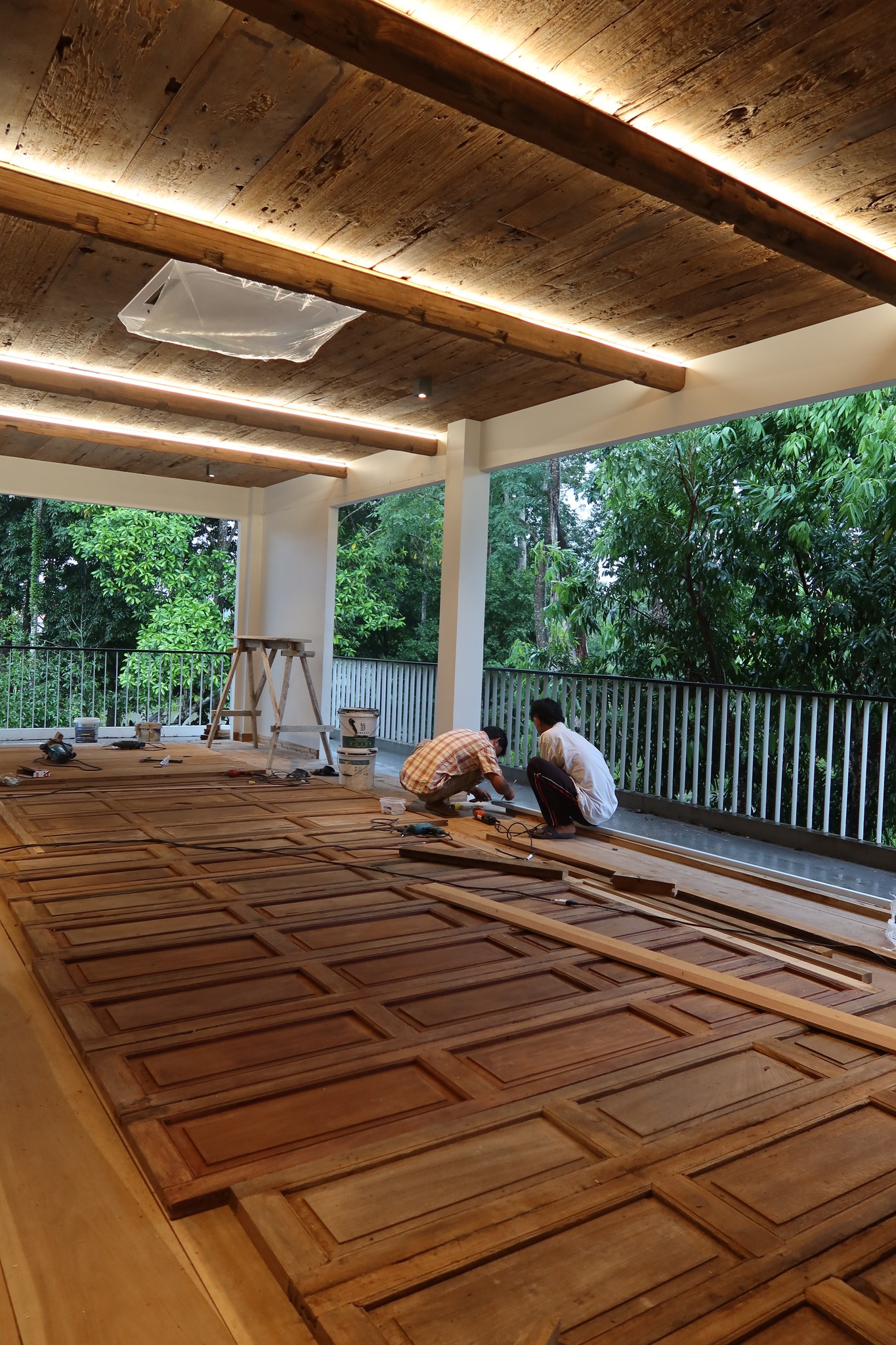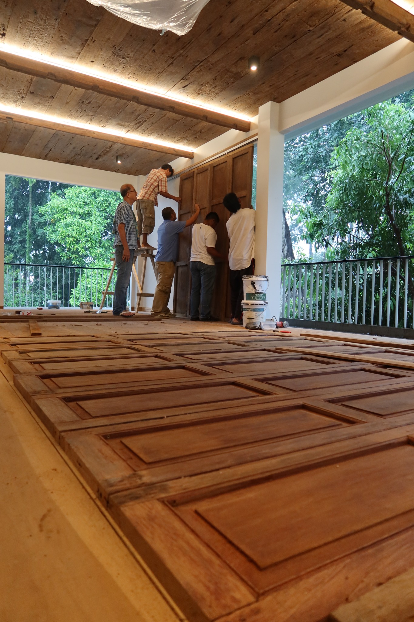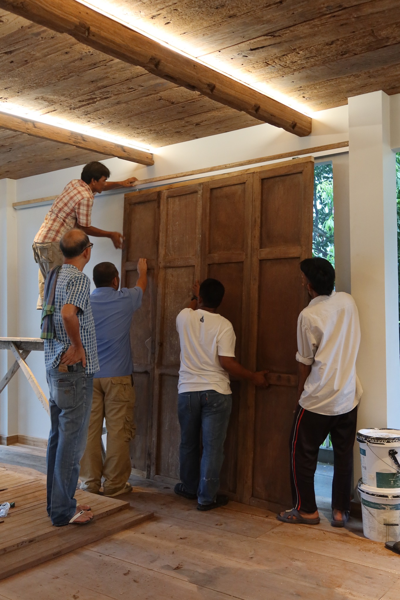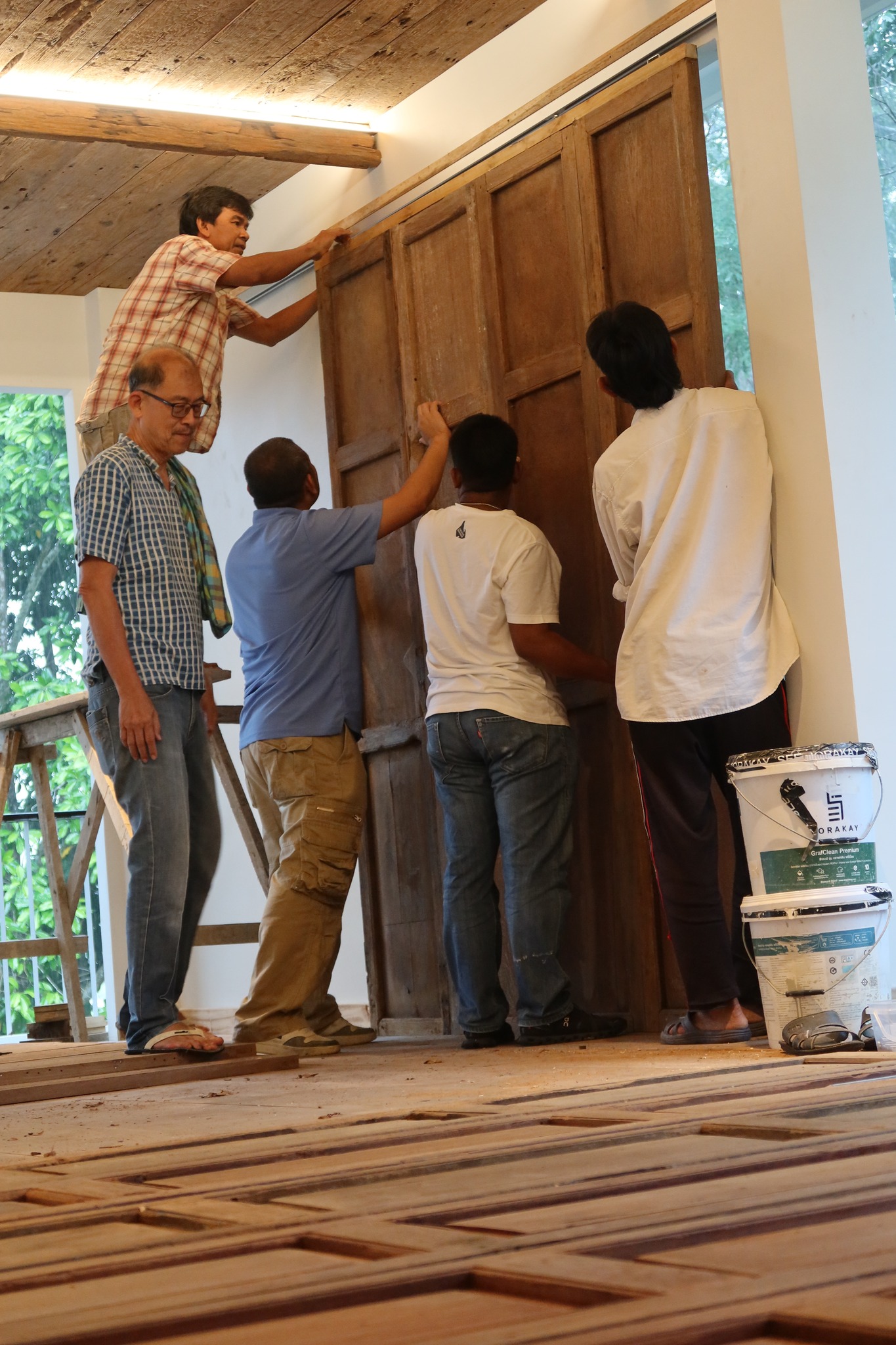 วันนี้เป็นการติดตั้งบานประตูที่ขอใช้ประตูเก่าเก็บทั้งหมด