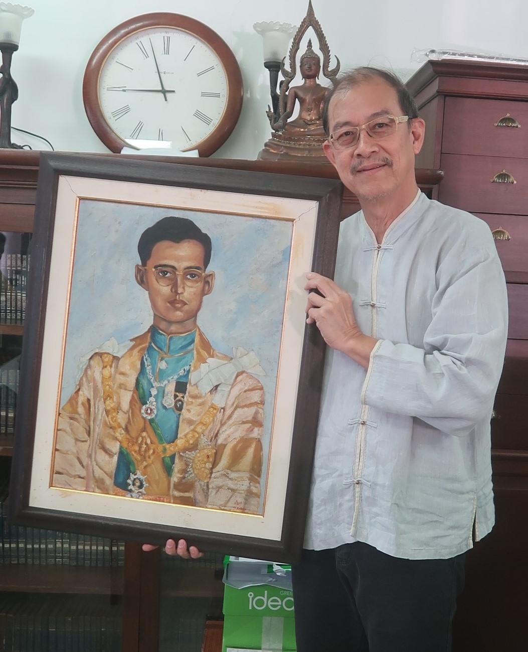 ส่วนภาพวาดรัชกาลที่ ๙ นั้น เป็นงานวาดเองเมื่อปี ๒๕๑๕ ขณะอายุ ๑๕ ปี