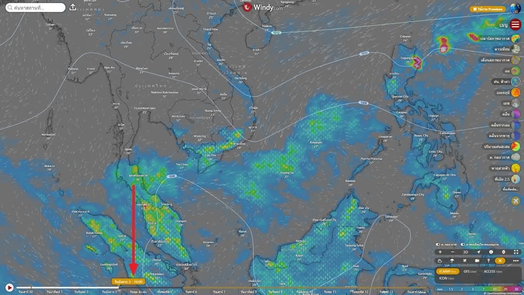 ก่อตัวจ่ออยู่ที่นอกฝั่งนครลงไปทางสงขลา