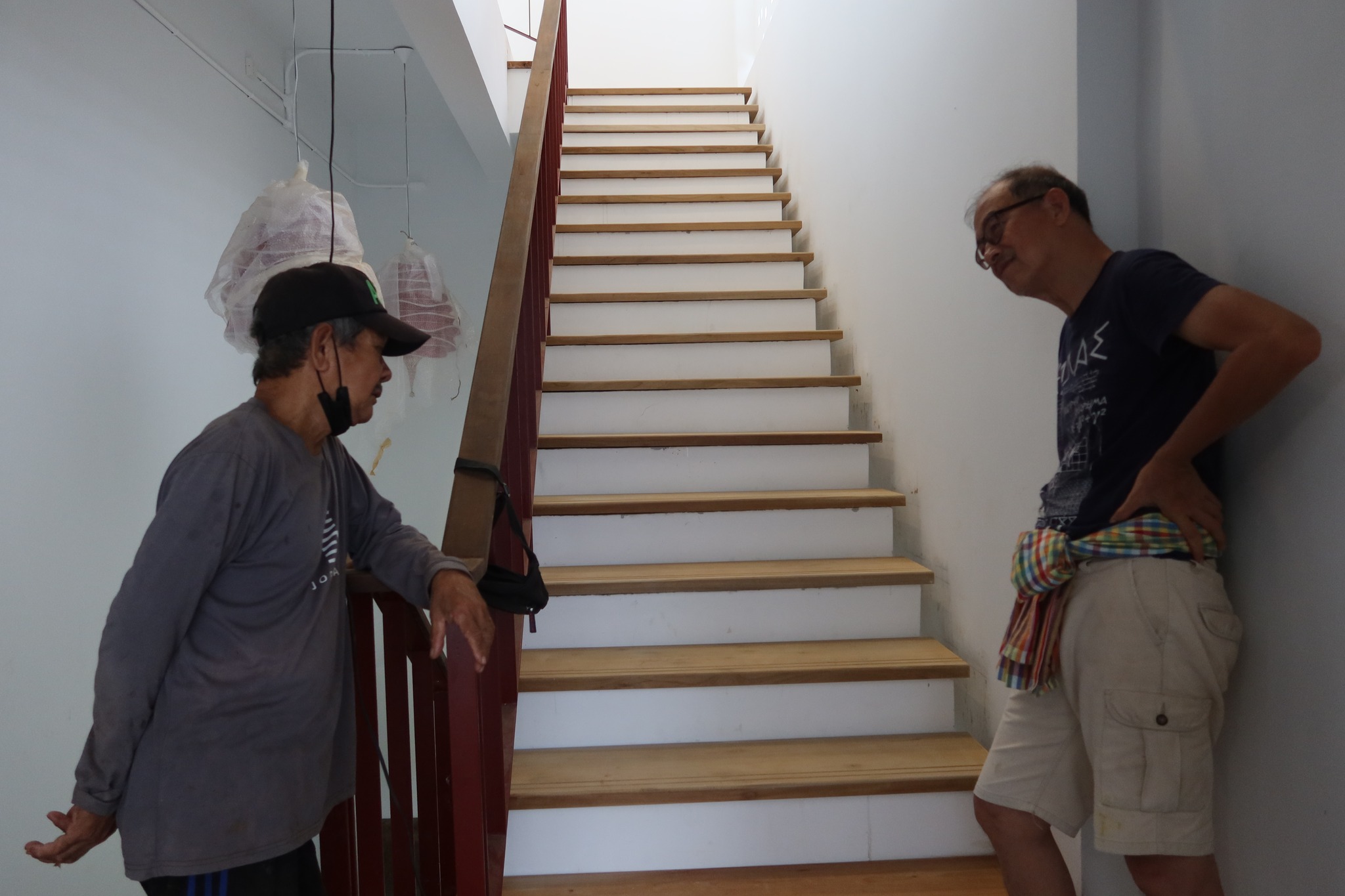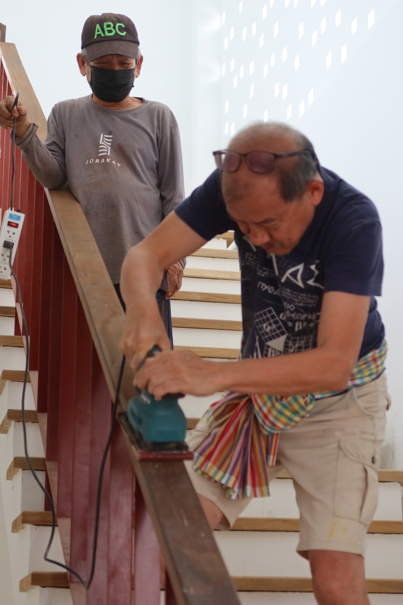 ส่วนราวหัวไดที่ใช้ไม้เคี่ยมทำนั้น ตอกลงว่าปีเตอร์จะขัดปรับและทำสีให้แช้งวับ